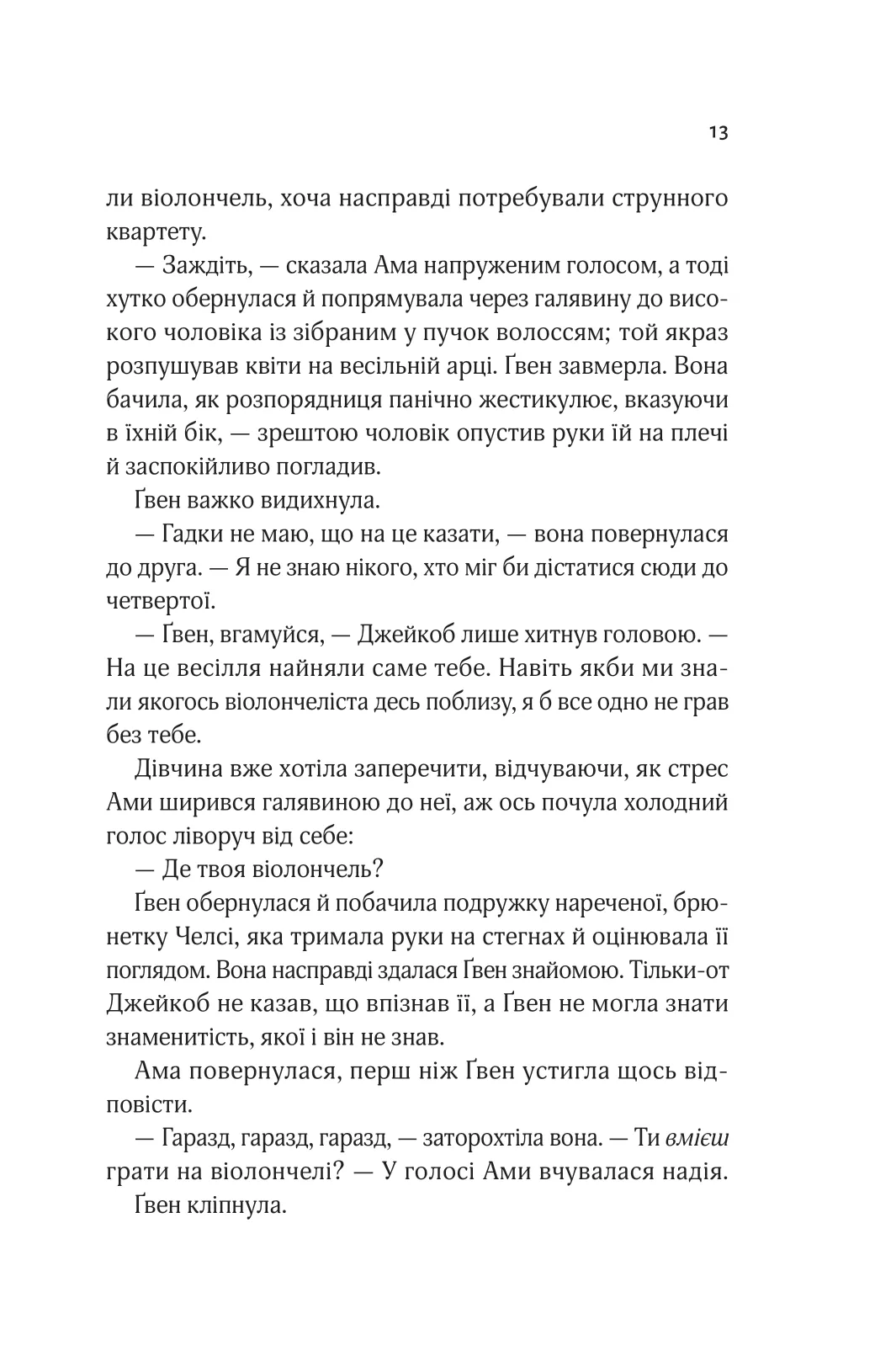 Ксандер Торн — зарозумілий зірковий спадкоємець відомої родини, який увібрав класичну музику з молоком матері. Ґвен Джексон ніколи не думала, що стане музиканткою, аж поки не почула звучання скрипки в музичній крамниці. Обоє музичні вундеркінди, але їхні світи надто різні. Ксандер не помічає талановитої дівчини, попри те що вони вже рік грають в одному оркестрі. Ще й різко критикує її. Коли Ґвен пропонують стати першою скрипкою, вона нетямиться від щастя. А Ксандер роками мріяв про цю посаду, тож напруга переростає в справжню війну. Та це палке протистояння розбивається вщент, коли між хлопцем і дівчиною виникає неймовірна хімія. Вони грають разом, творять разом, шаленіють одне від одного й примушують шаленіти натовп. Та чи витримають їхні почуття, коли стануть частиною концертної програми?
