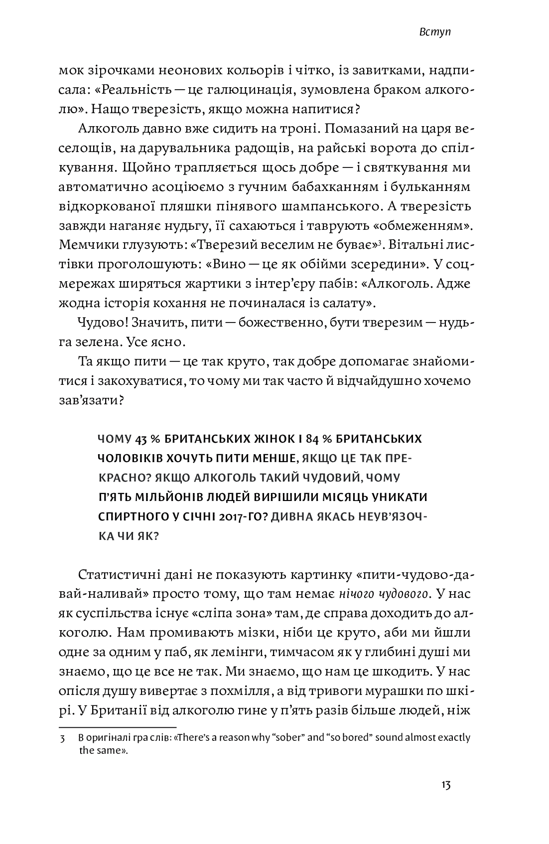 Спираючись на власний досвід подолання алкогольної залежності, Кетрін Ґрей аргументовано й натхненно пояснює, в який спосіб тверезе життя може виявитися якісно ліпшим, значно цікавішим, багатшим, насиченішим, яскравішим, щасливішим. А втім, лише вам вирішувати, чи обрати цю альтернативну реальність без випивки й втішатися життям без похмілля.