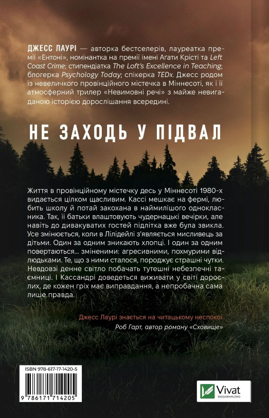 Життя в провінційному містечку десь у Міннесоті 1980-х видається цілком щасливим. Кассі мешкає на фермі, любить школу й потай закохана в наймилішого однокласника. Так, її батьки влаштовують чудернацькі вечірки, але навіть до дивакуватих гостей підлітка вже була звикла. Усе змінюється, коли в Лілідейлі з’являється мисливець за дітьми. Один за одним зникають хлопці. І один за одним повертаються… зміненими: агресивними, похмурими відлюдьками. Те, що з ними сталося, породжує страшні чутки. Невдовзі денне світло побачать тутешні небезпечні таємниці. І Кассандрі доведеться виживати у світі дорослих, де кожен гріх має виправдання, а непробачна сама лише правда.