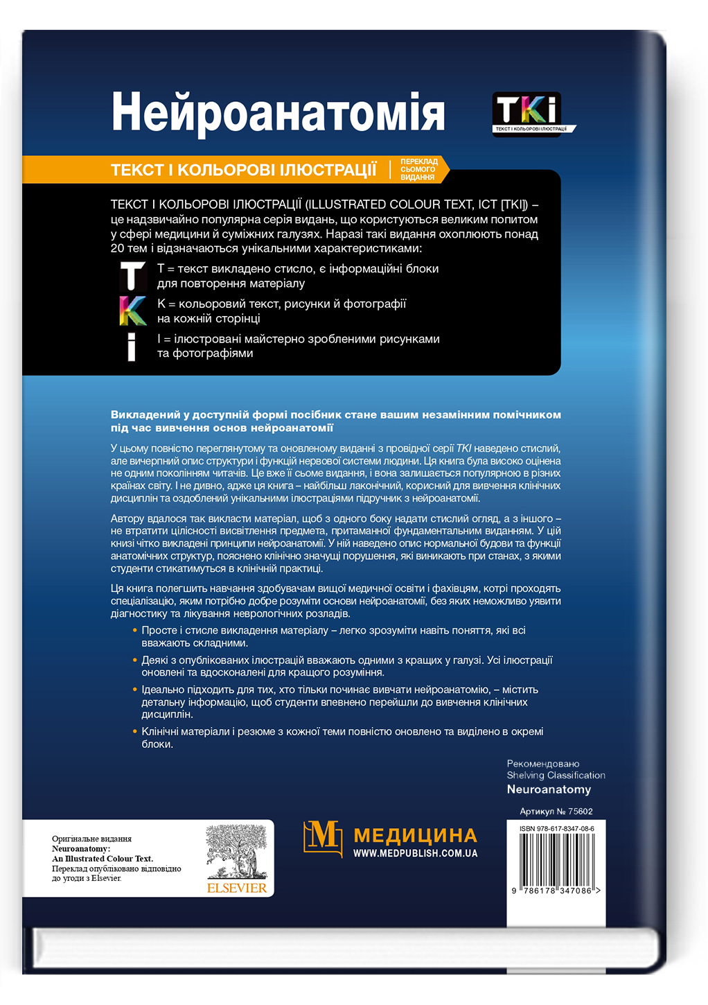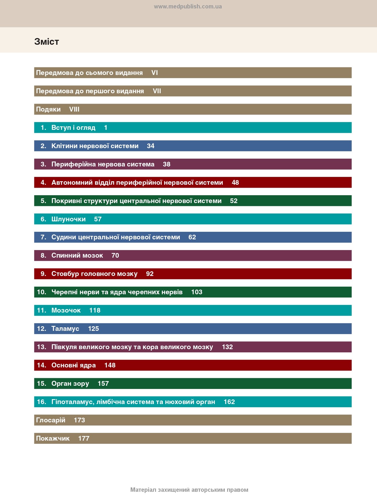 У цьому повністю переглянутому та оновленому виданні з провідної серії ТКІ наведено стислий, але вичерпний опис структури і функцій нервової системи людини. Ця книга була високо оцінена не одним поколінням читачів. Це вже її сьоме видання, і вона залишається популярною в різних країнах світу. І не дивно, адже ця книга — найбільш лаконічний, корисний для вивчення клінічних дисциплін та оздоблений унікальними ілюстраціями підручник з нейроанатомії.