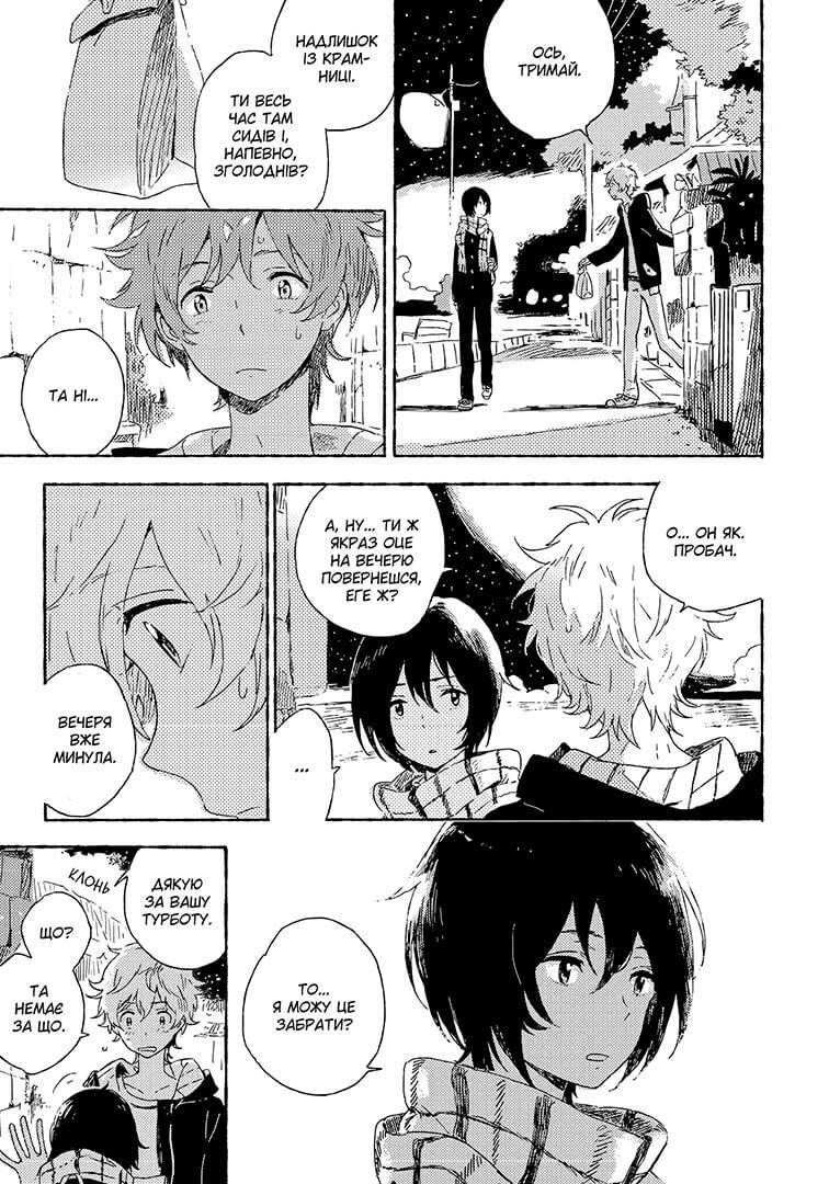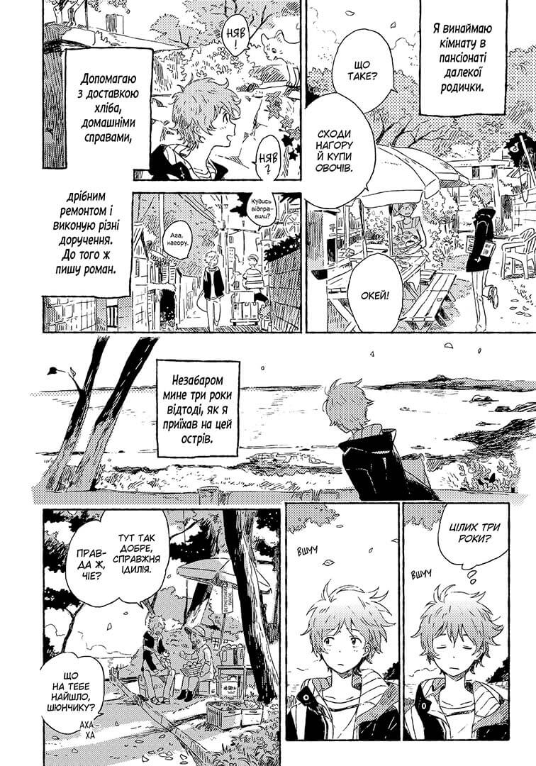 Але щойно він стає на шлях усамітнення, у його житті з’являється незнайомець, що проводить весь вільний час на узбережжі. Цей мовчазний юнак, Міо Чібана, так само намагається пережити нещодавню втрату батьків. Між такими схожими душами зароджується зв’язок, що з часом міг би перерости у щось глибше… Якби Міо раптом не повідомив про свій від’їзд, залишивши Шюна наодинці з невисловленими думками.