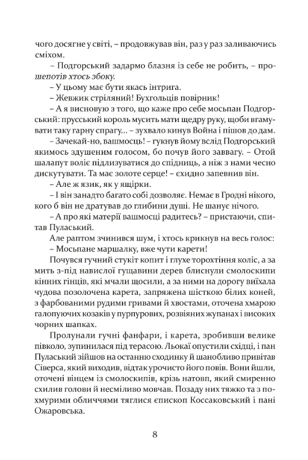 Події роману відбуваються під час засідання останнього сейму Речі Посполитої в Гродні у 1793 році, коли Польща була змушена ратифікувати трактати про другий поділ — між Росією і Пруссією.