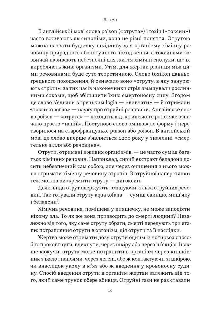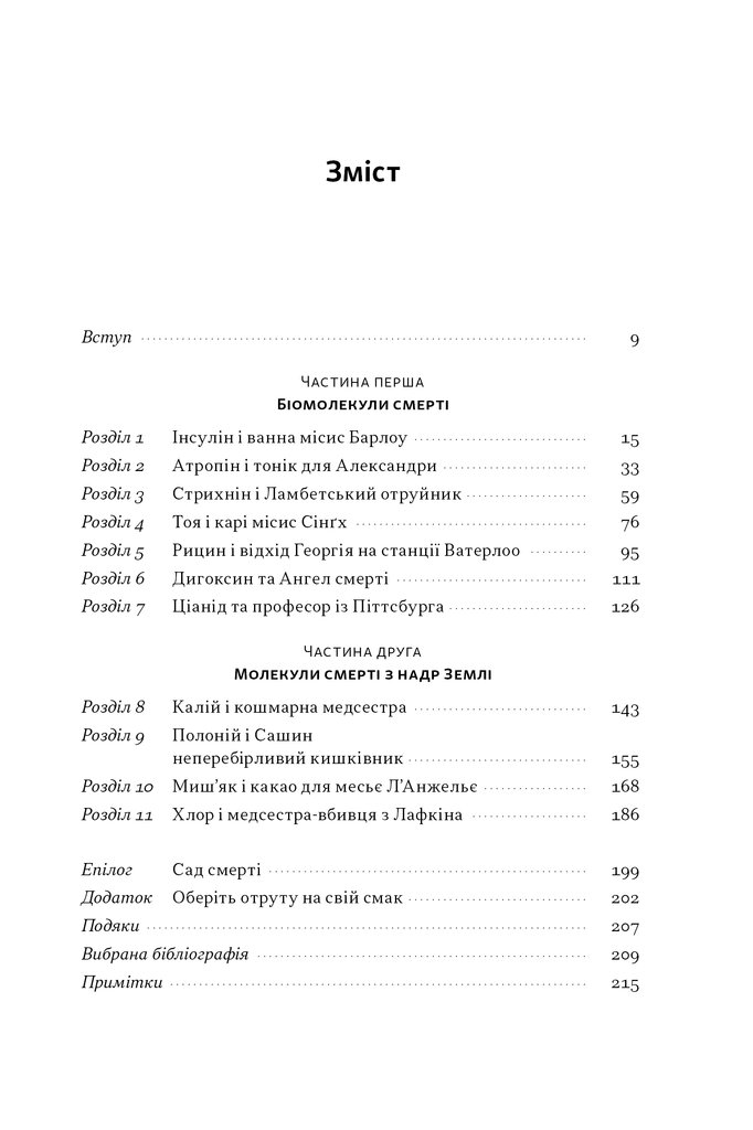 У ваших руках — захопливе поєднання науково-популярної літератури, історії медицини і реальних злочинів. Доктор Ніл Бредбері досліджує одинадцять смертельних речовин і їхній вплив на людський організм на молекулярному, клітинному та фізіологічному рівнях.