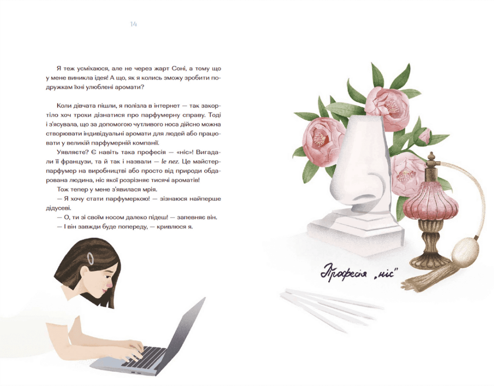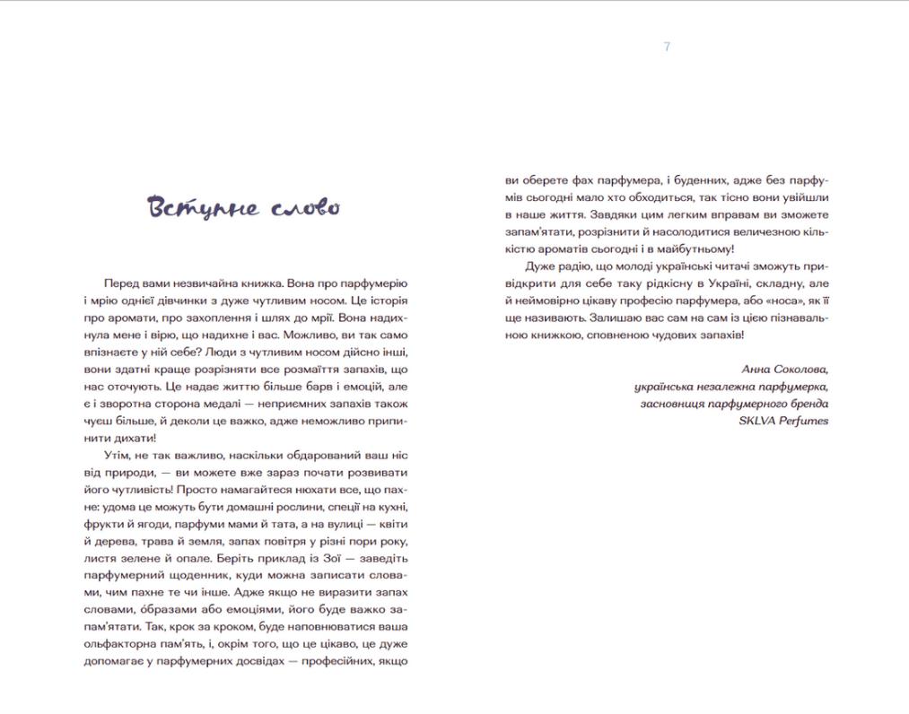 З цією книжкою ти відкриєш чарівний світ парфумерії та довідаєшся, як виготовляли ароматні суміші у давнину, як виникла ідея створення найвідоміших парфумів та кому вдалося закоркувати аромат книжок. А ще помандруєш із Зоєю до музею парфумів «Фраґонар» у Парижі!