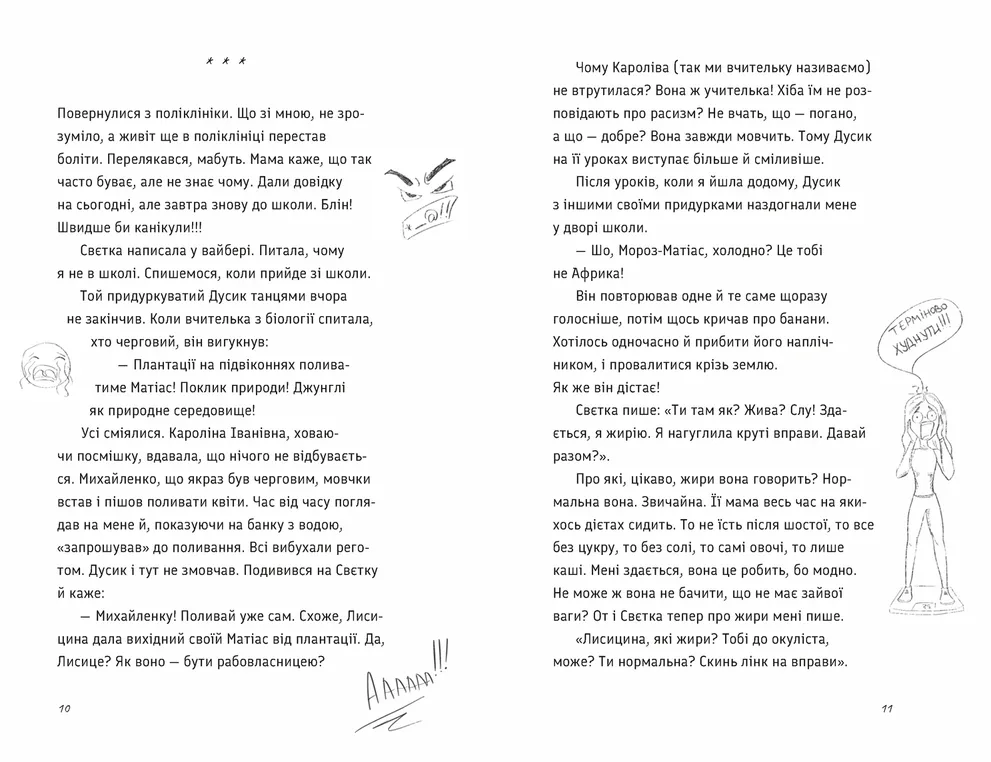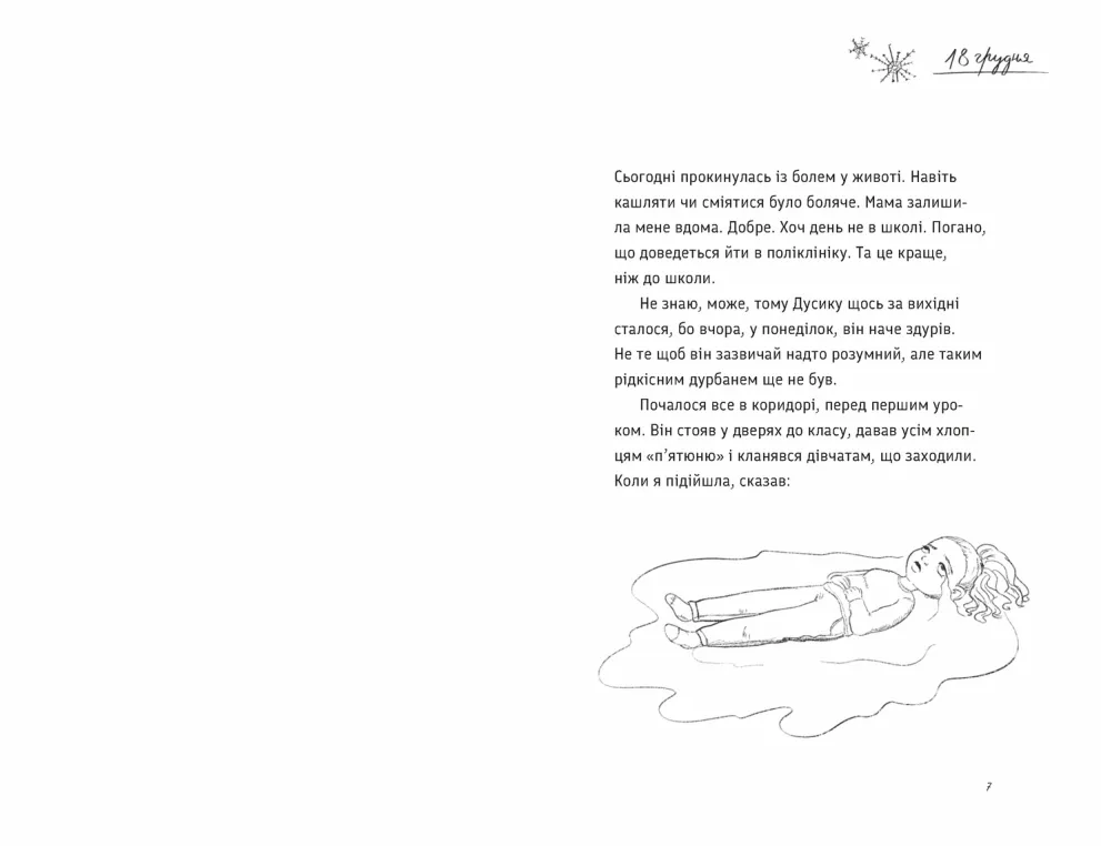 Книжка написана у формі щоденника, у якому дівчинка міркує над буденними і винятковими ситуаціями свого життя. Переживати прикрощі їй допомагає сім’я, друзі й улюблене заняття — малювання. І навіть коли життя робить крутий поворот, виявляється, що за ним — лише цікаві відкриття, а можливо, навіть здійснення мрій.