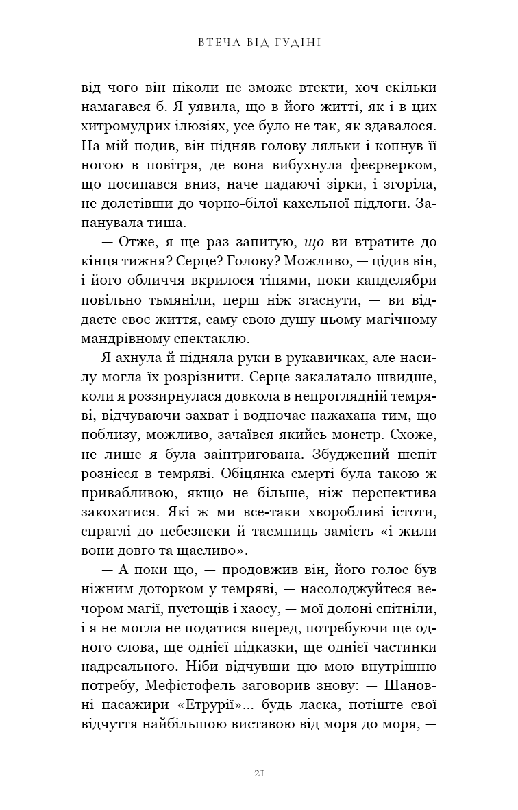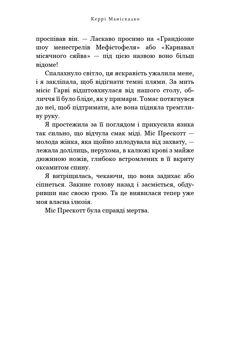 Одрі Роуз Водсворт та її чарівний супутник Томас Кресвел вирушають на розкішному лайнері до Нью-Йорка, щоб взяти участь у важливій судово-медичній справі. Під час подорожі, впродовж семи ночей для пасажирів заплановані неймовірні циркові розваги. Окрасою кожної є виступ загадкового молодого артиста, який вміє майстерно позбуватися будь-яких кайданок. Проте вже під час першої вистави стається моторошне вбивство молодої дівчини. Для Одрі Роуз «Карнавал місячного сяйва» з його загадковими виконавцями і небезпечними номерами стає суцільним жахіттям, на тлі якого вона намагається знайти відповіді на свої запитання. Чи зможе дівчина врятувати того, хто їй небайдужий і розкрити цю справу до того, як вбивця досягне своєї страшної мети?