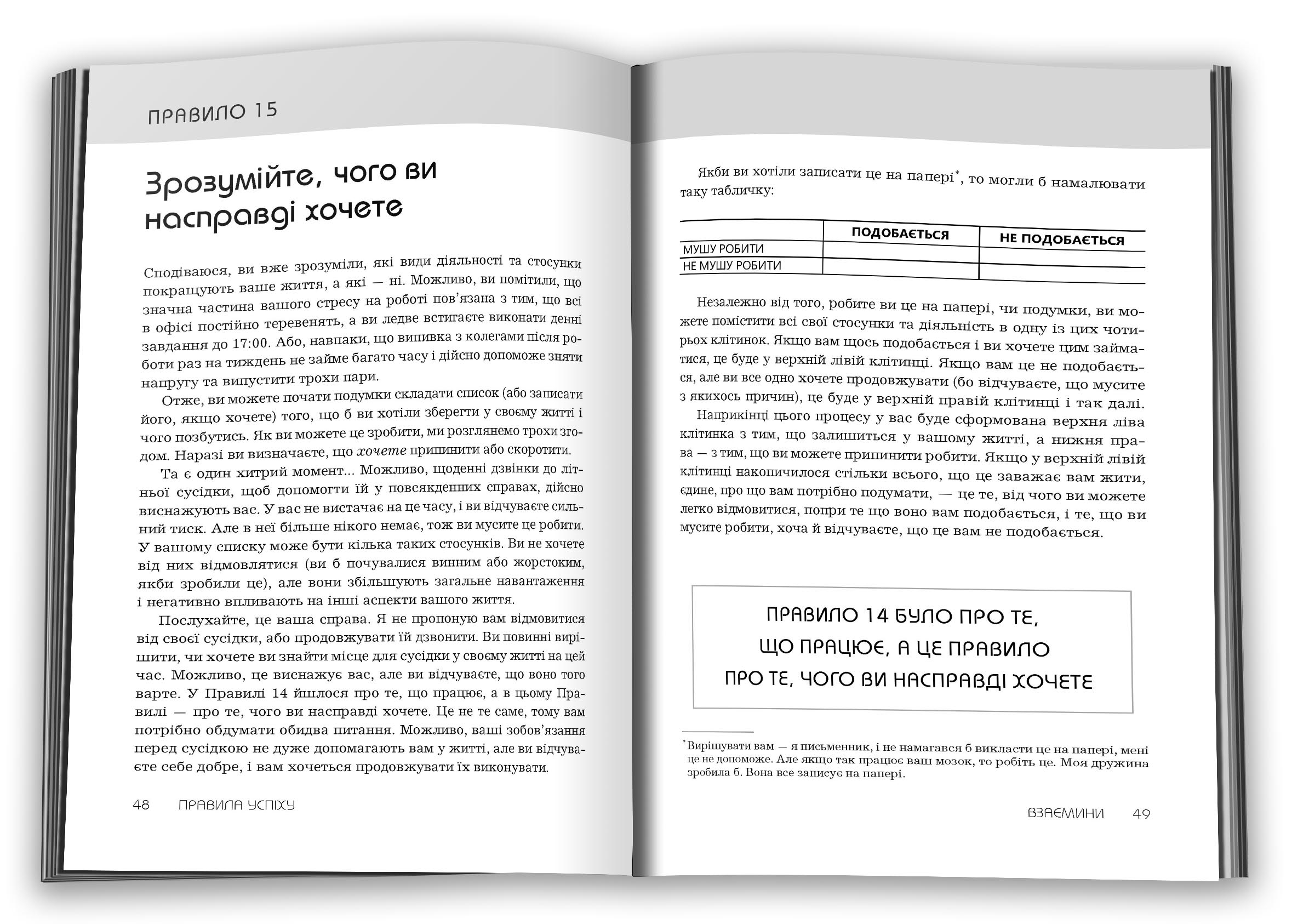 Деякі люди досягають успіху в усьому. Переважно це люди, які контролюють свій час, своє навантаження, свої гроші, свої емоції. Люди, які можуть легко досягати поставлених цілей, тому що вони приймають правильні рішення, ефективно управляють своїми стосунками, продуктивні на роботі, функціонують у світі, де є можливість зосередитися на важливих для них речах і не загрузнути в дрібницях, подібно до багатьох інших людей. Вони досягають цього не завдяки якомусь вродженому таланту. Вони використовують навички, якими ви також можете оволодіти. Правила, наведені в цій книжці, розкриють секрети, які дадуть вам змогу впливати на своє життя, своє оточення, свою долю. І тільки від вас залежить, чи вдасться вам втілити це в життя.
