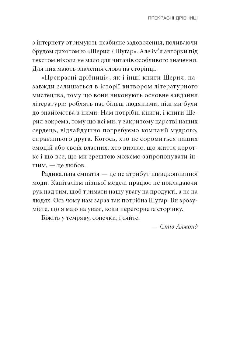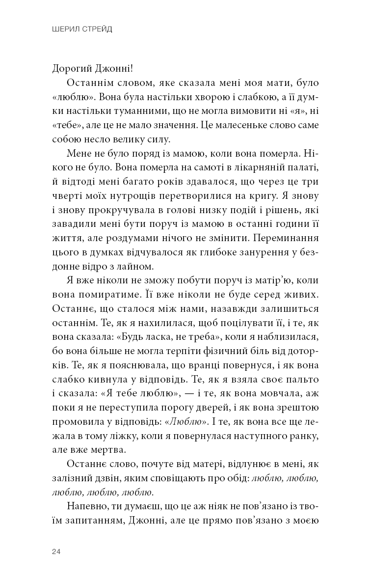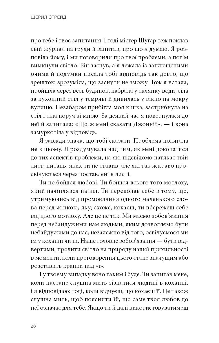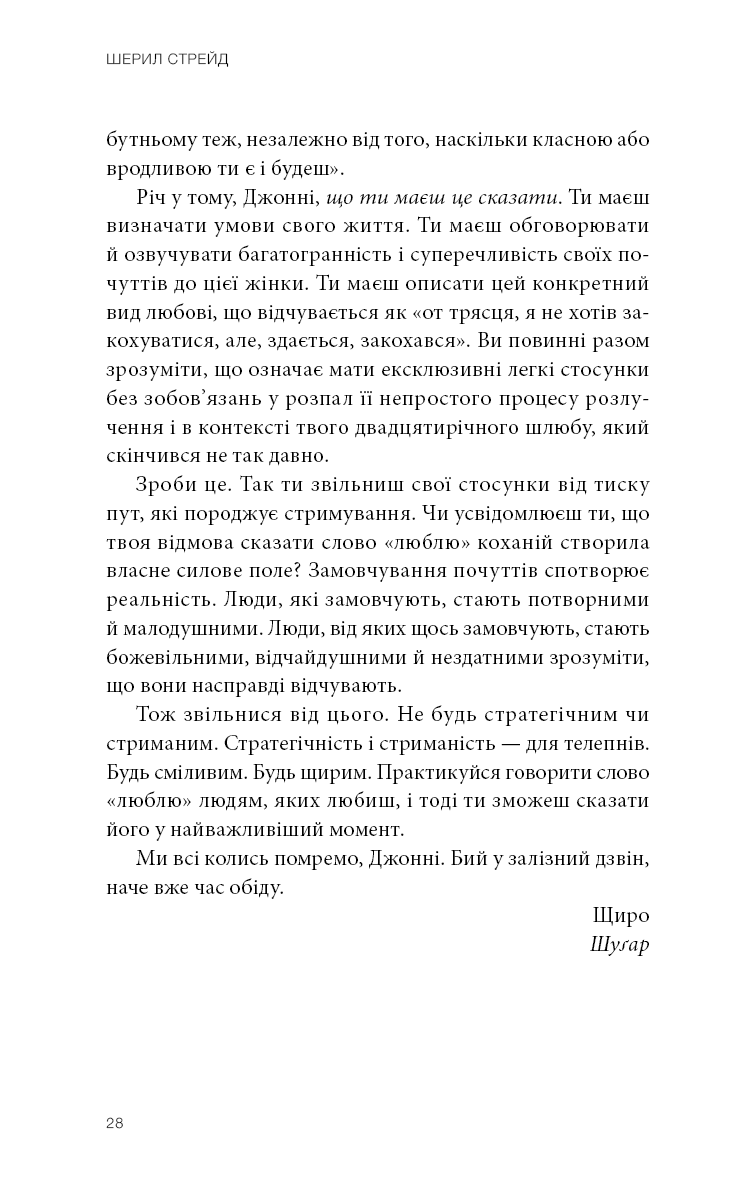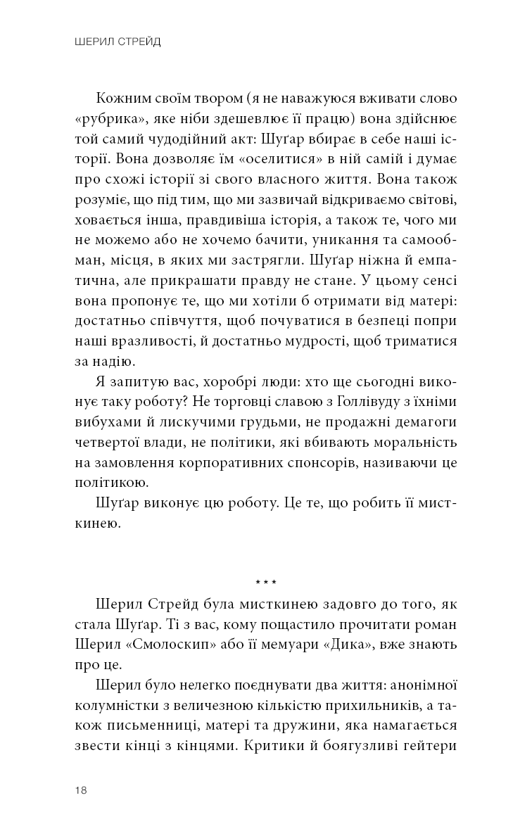 Шерил Стрейд, авторка бестселерів, уже понад 10 років веде авторську колонку на літературному порталі The Rumpus, у якій ділиться своїми міркуваннями щодо найрізноманітніших життєвих ситуацій. Логічно пояснюючи емоції людей, ставлячись із розумінням та щирістю до кожного читача, згадуючи пережитий особисто й чужий досвід, додаючи дещицю гумору й багато співчуття, Шерил Стрейд допомогла багатьом читачам пережити складні часи, випливти на поверхню й побачити світло та берег посеред, здавалося б, суцільного океану страждань. Найцікавіші матеріали цієї колонки й стали основою книги, здатної допомогти подолати життєві труднощі.