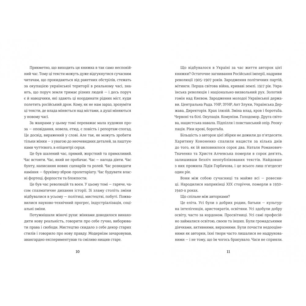 «Революціонерки» — жінки, які на початку ХХ століття осмислювали нові ідеї, здобували досі незнані досвіди, перебували у вирі подій і фіксували особисті переживання й потрясіння, яких зазнавали Європа та розділена Україна. Ці тексти класикинь, знайдені в бібліотеках і архівах та упорядковані літературознавицею Анастасією Євдокимовою, — портрети жінок у буремний час. Це уважний погляд репортерок та документалісток, які переосмислюють нову добу та самих себе. У збірці вміщено художні й публіцистичні твори Христі Алчевської, Лідії Горбачової, Наталі Романович-Ткаченко та Хариті Кононенко — історії особистих перетворень і незворотних суспільних процесів. Передмова мисткині Олени Павлової показує закулісся життя революціонерок: якою була епоха цих жінок та якими були вони — вольовими, діяльними й поза шаблонами.