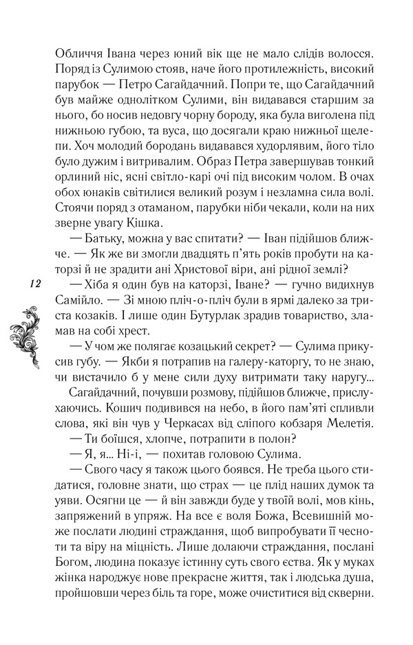 Самійло Кішка має вже багато років за плечима, але його розум досі такий же гострий, як і його шабля. Міцно тримає він у руках гетьманську булаву. Ніколи не відступає перед смертельною небезпекою й вчить того ж молодих козаків, на яких покладає особливі надії: Петра Сагайдачного, Михайла Дорошенка, Івана Сулиму. Адже земля українська та батьківська віра варті того, щоб їх відстоювати ціною життя! Гартуючи тіло й душу у полум’ї боротьби, юний Сагайдачний розпочне нову сторінку свого життя, зустріне вірних друзів і перше кохання.