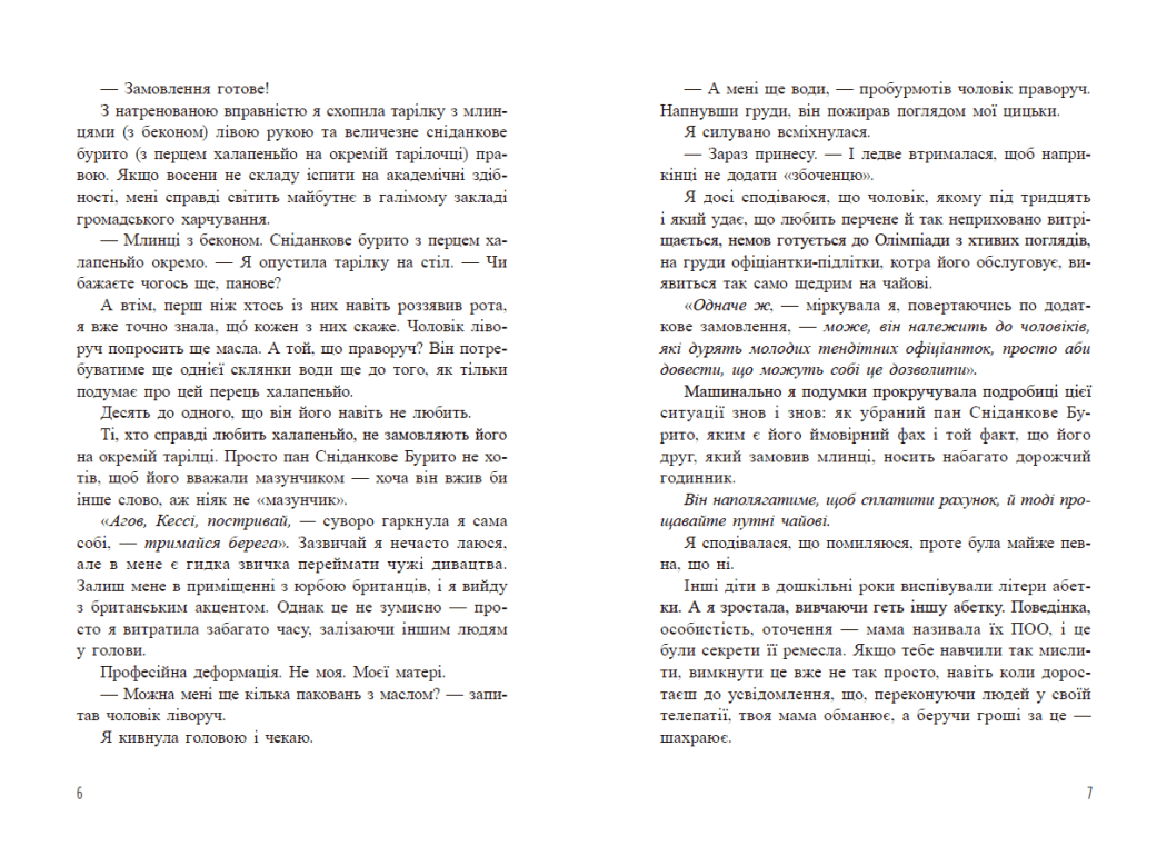Сімнадцятирічна Кессі належить до так званих «самородків» – вона профайлерка від народження – і її вміння «читати» людей неабияк зацікавило ФБР. У бюро є навіть окрема програма для таких юних і своєрідно обдарованих людей, і до неї завербовано, крім Кессі, ще четверо.