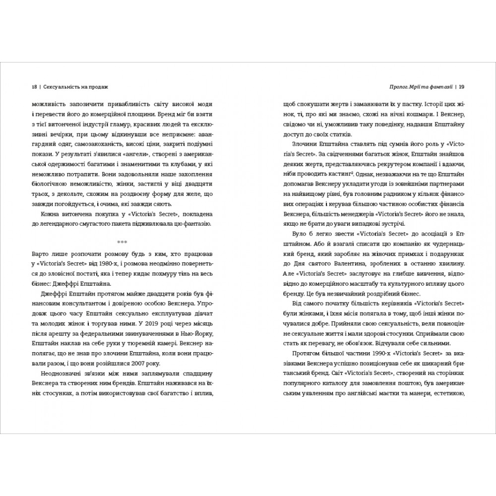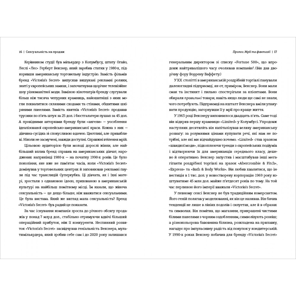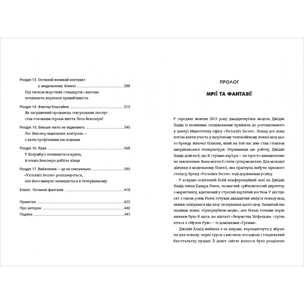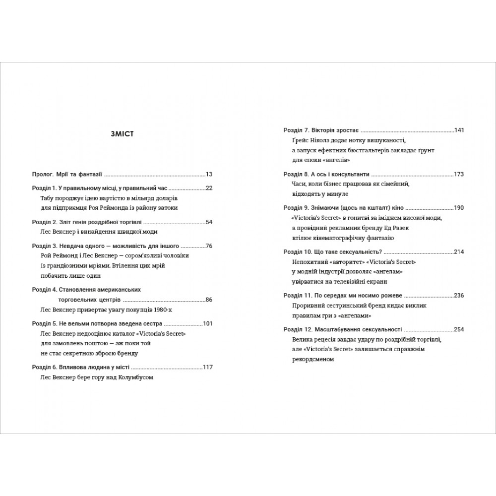 Захоплива, пізнавальна й майже документальна історія кількох десятиліть розвитку моди й бізнесу, еволюції ідеалу краси і сприйняття сексуальності, трансформації торгівлі, становлення модельного бізнесу і безпрецедентного піару — все це про легендарний бренд «Victoria’s Secret», з яким росли покоління жінок і який є прикладом одного із найуспішніших бізнесів. Як зародилась ідея бренду і творилася легенда про Вікторію, якими були її таємниці, злети на ангельських крилах і падіння. Книжка про один із найуспішніших і найвідоміших брендів розкриває не лише бізнесову історіюй залаштунки «Victoria’s Secret», а й дає безліч ідей, як розвивати бренд інноваційно, вгадувати тренди майбутнього й самим визначати їх, плисти у морі бізнесу не лише за часом, а на гребені хвилі.