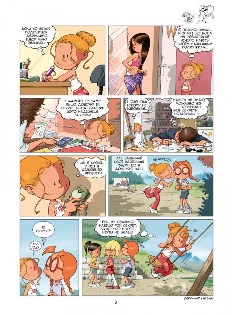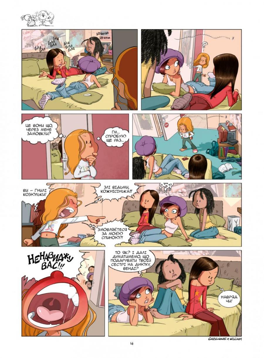 Цей комікс не тільки для дівчат, а й для хлопців — адже і їм також деколи потрібно зрозуміти сестричок чи шкільних подруг та знайти до них підхід. Отож — про сім’ю, щоденні взаємини між дітьми, різноманітні ситуації з друзями та у школі, й усе це — з неперевершеним французьким гумором!