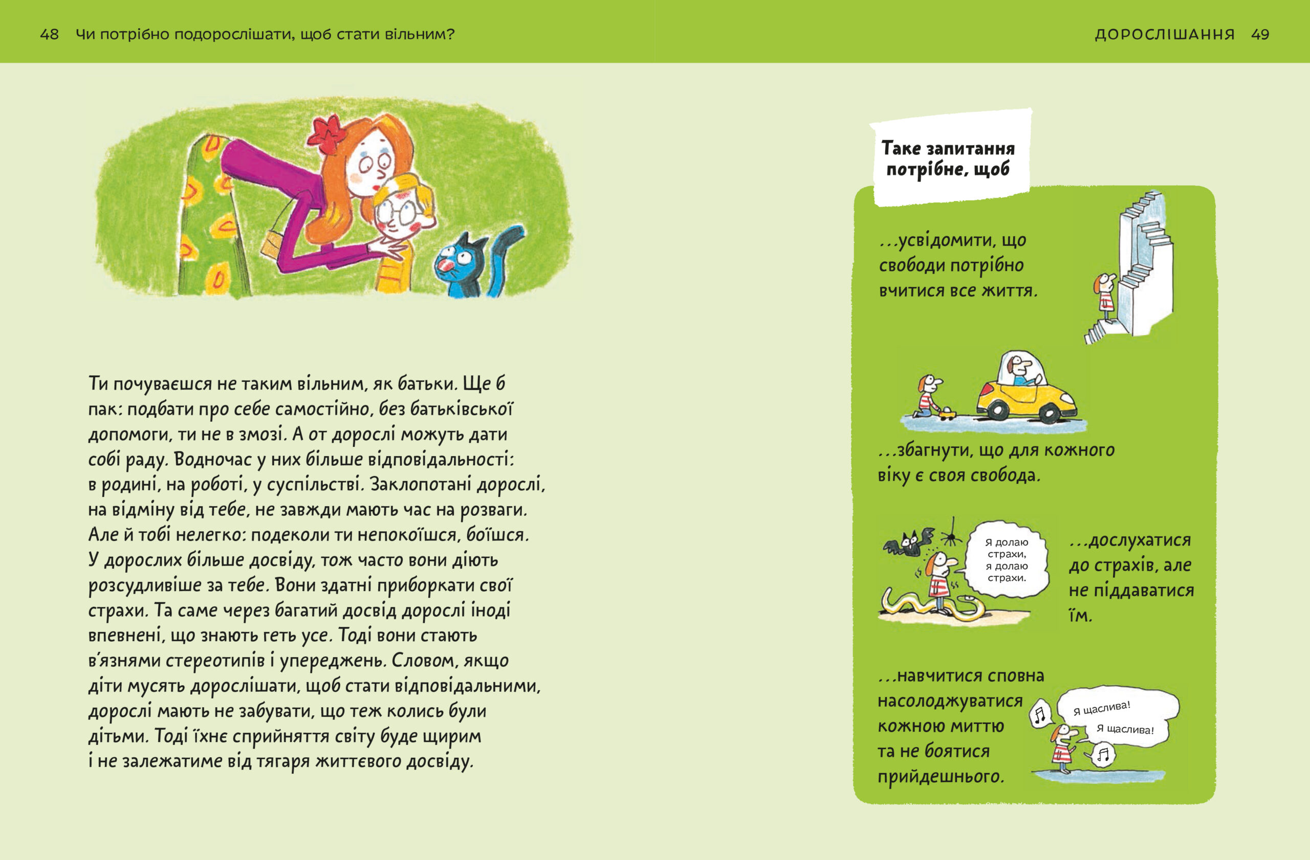 Книжка французького філософа-практика Оскара Бреніф’є допоможе батькам і дітям поговорити про свободу й обмеження так, щоб кожен почувався вільним у своєму виборі.