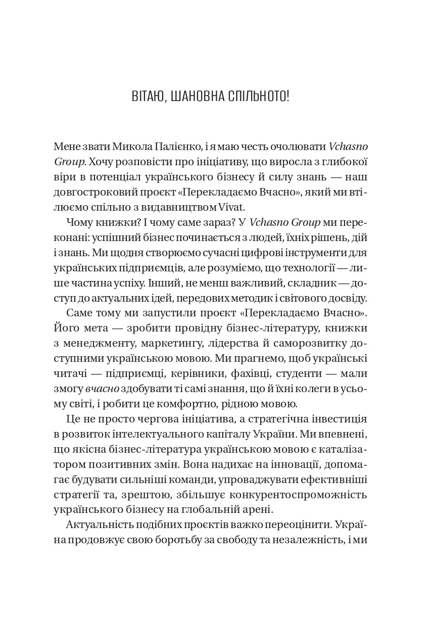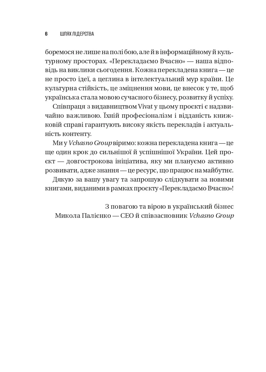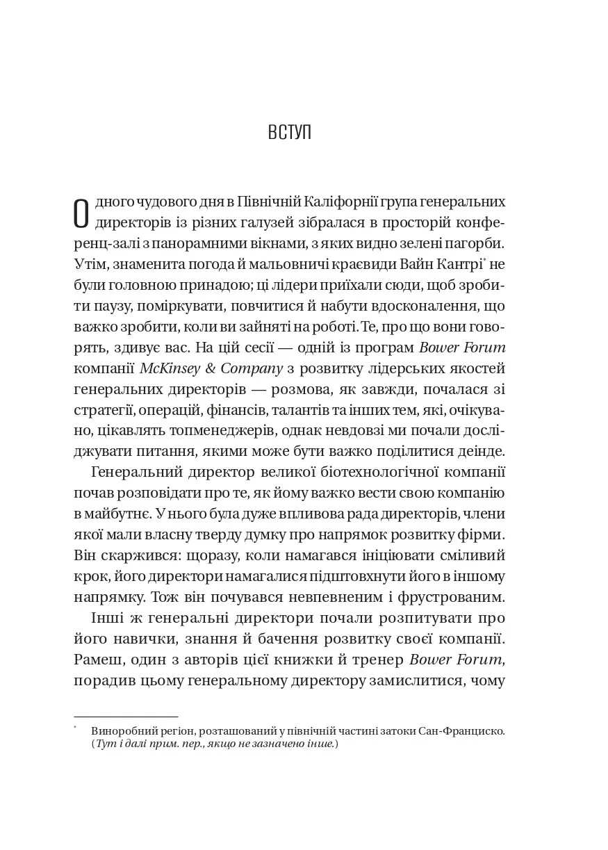 У часи глобальних потрясінь, невизначеності та щоденних викликів компанії потребують нової філософії лідерства. Як залишатися сильним у скрутні часи? Як вести команду, коли сам не маєш готових відповідей? «Шлях лідерства» — це книжка про те, як сучасні генеральні директори вчаться лідерства, починаючи з себе. Спираючись на багаторічний досвід McKinsey & Company та легендарної програми The Bower Forum, автори показують: справжні зміни організації починаються з особистої трансформації її керівника.