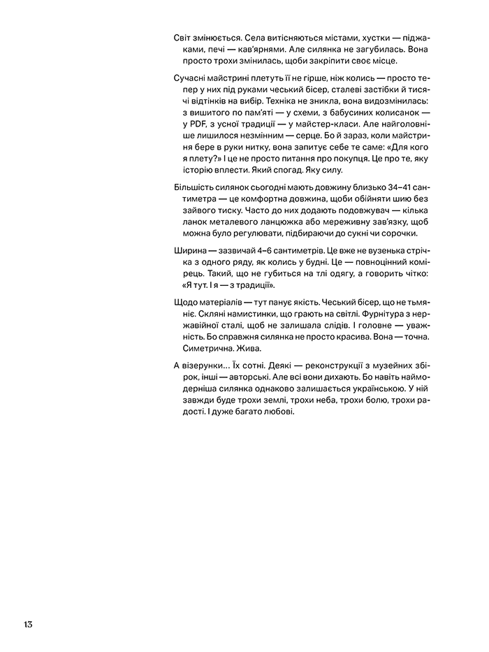 Силянка — це не просто прикраса. Це жива нитка, що з’єднує жінок, покоління, історії. У ній — пам’ять, ніжність і сила, вплетені в кожен колір, у кожен рух.Перед тим, як торкнутися бісеру, зупинись. Відчуй намір. Бо справжня силянка народжується не з голки — а з серця. Вона не просто створюється, вона передає: любов, спокій, пам’ять, тишу.Коли тримаєш нитку в руках, ніби зшиваєш цей світ — шматочок за шматочком, кольором за кольором. І саме в цьому — її магія. Підготуй бісер, налаштуй світло, вдихни глибоко — і дозволь своїм рукам творити. Бо кожен вузлик — це крок до гармонії.