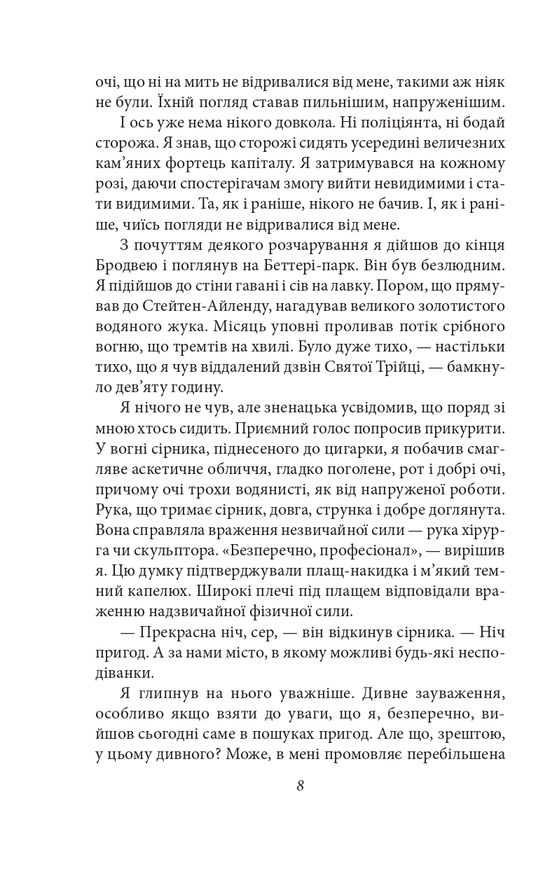 У романі «Сім кроків до Сатани» (1927) наймогутніші люди світу укладають угоду з дивним чоловіком, який має необмежені багатство та владу. Він — геній, чий інтелект можна порівняти з інтелектом видатних учених. Майстер ігор міг би вгамувати свої бажання душами тих, хто програв, і завоювати світову владу за допомогою диявольських маніпуляцій. Але його колекцію неодмінно має прикрасити Джеймс Кіркгем. Тому американський дослідник стає жертвою таємничої змови. Сатана пропонує головному герою зіграти з ним у свою гру. Чи вистачить Джеймсу кмітливості та рішучості, щоб здобути перемогу та залишитися живим?