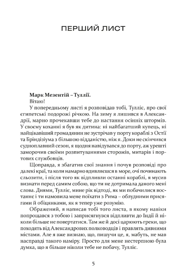 Роман написано в формі листів римлянина Марка до його колишньої коханої, з якою він мав пристрасні й непрості взаємини. Цікавий до книг і рукописів, Марк дослухається до численних пророцтв і вирушає на пошуки нового світового правителя. У Єрусалимі він стає самовидцем смерті Ісуса Назарянина на хресті. Чи є цей дивний чоловік новим царем – і якщо так, то чому він дав себе вбити і де його царство? Марк вірить своєму серцю, проте допитливий розум спонукає його почати власне розслідування. Він шукає знайомства з учнями Ісуса та усіма, хто його бачив. У реалістично описаних мешканцях Юдеї та Галілеї ми впізнаємо персонажів з Нового Заповіту, від Понтія Пилата до апостолів і Марії Магдалени, від Лазаря та його сестер до милосердої самарянки, а у неймовірних пригодах, що трапляються на очах у Марка, – біблійні сюжети. Розгадуючи таїну царства Ісусового, герой книжки проходить нелегкий процес самопізнання, а ще – несподівано знаходить нову подругу життя.