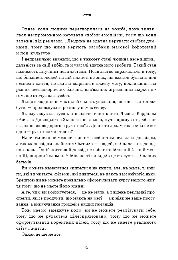 Це книга-медитація, яка розширить ваш кругозір і по¬сприяє набуттю досвіду для подальшого зростання і самореалізації, постановки й досягнення проміжних результатів і ключових цілей."