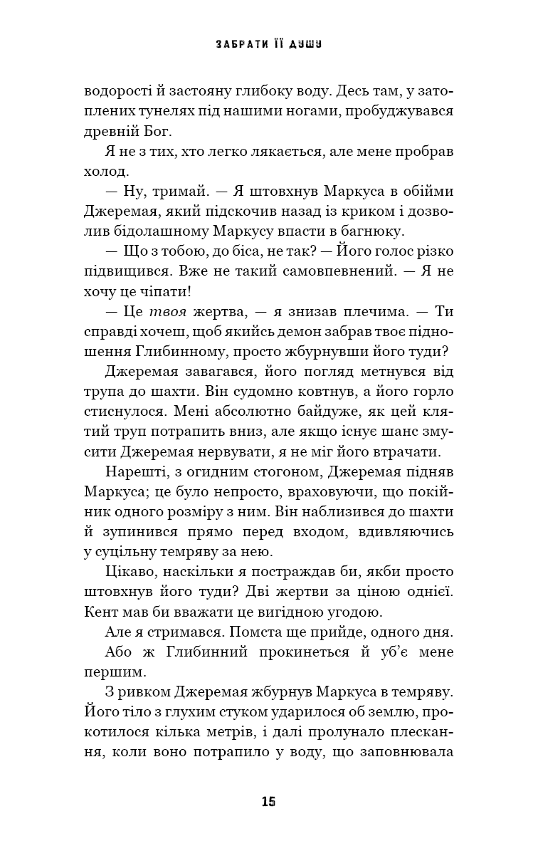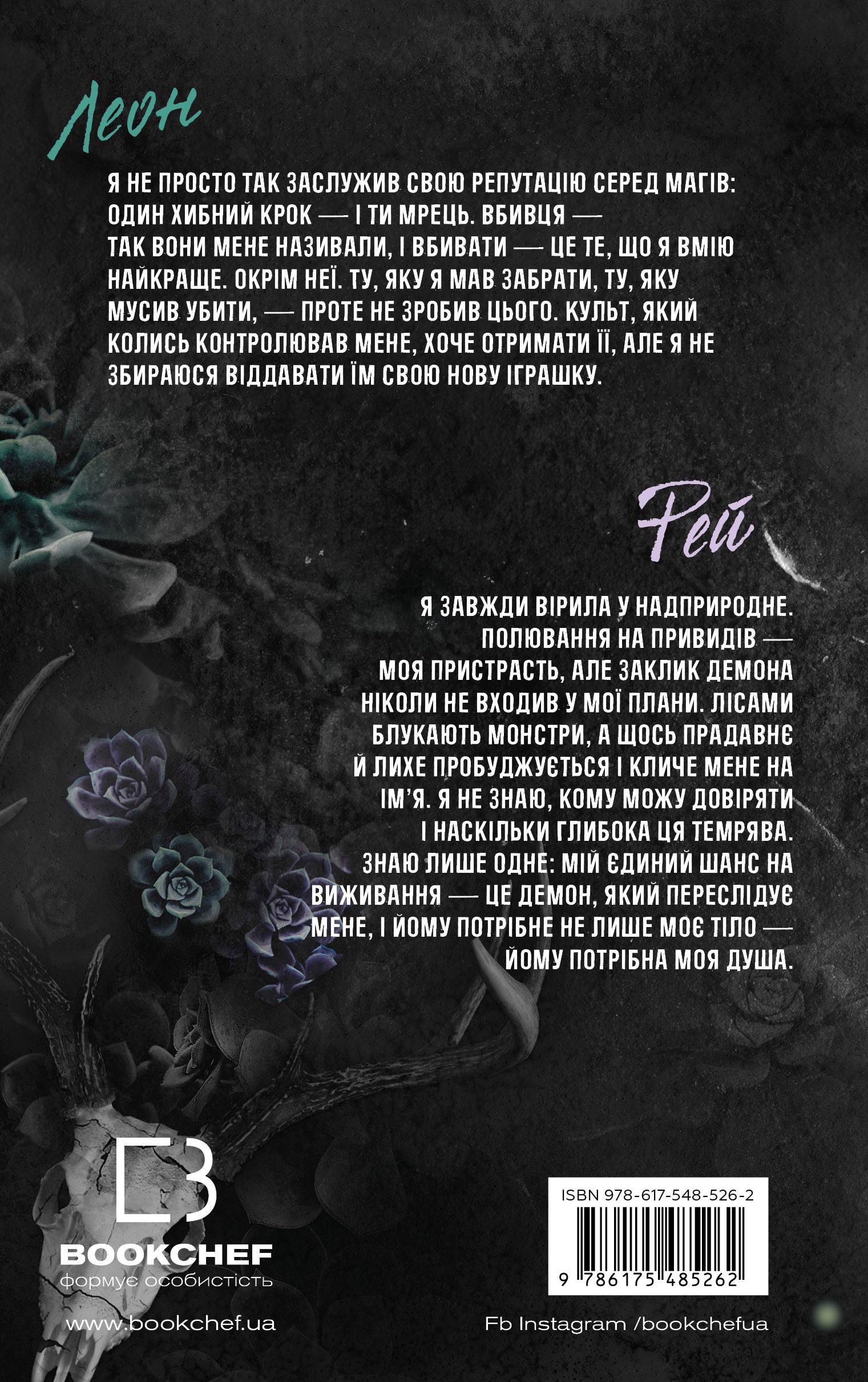 Я завжди вірила у надприродне. Полювання на привидів — моя пристрасть, але заклик демона ніколи не входив у мої плани. Лісами блукають монстри, а щось прадавнє й лихе пробуджується і кличе мене на ім’я. Я не знаю, кому можу довіряти і наскільки глибока ця темрява. Знаю лише одне: мій єдиний шанс на виживання — це демон, який переслідує мене, і йому потрібне не лише моє тіло — йому потрібна моя душа.