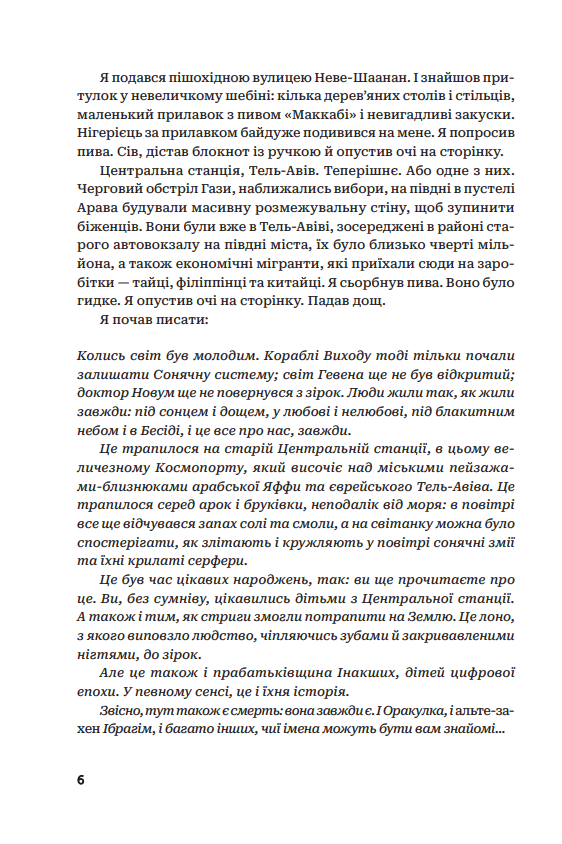 Дія кіберпанківського, «мозаїчного» (за авторським визначенням) роману Леві Тідгара «Центральна станція» відбувається у далекому майбутньому біля гігантського космодрому, що знаходиться між ізраїльським Тель-Авівом та арабською Яффою. Тут різні культури стикаються у реальному житті та віртуальній реальності. Тут життя дешеве, а інфа ще дешевша. Тут колишні солдати-кіборги давно забутих воєн доставляють нелегальні наркотики для вампірів-екстрасенсів, а роботи-священники читають проповіді та проводять обрізання. І тут усе пов’язано з Інакшими, могутніми чужопланетними сутностями, які через Бесіду — глобальну інфомережу — спричиняють безповоротні зміни у житті людства. І попри все, на Центральному вокзалі люди та машини продовжують адаптуватися, процвітати... і навіть еволюціонувати.