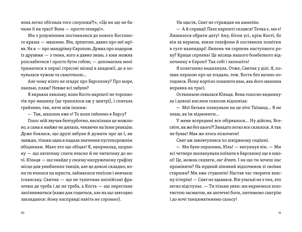 Діана та її шкільні друзі вирішили: щойно в когось із їхньої четвірки з’явиться власна автівка — вони гайнуть на ній через усю Європу до Барси… Гулятимуть до ночі, питимуть сангрію, танцюватимуть сальсу на міській площі, зустрічатимуть світанки на пляжі… Звучить як пісня! І ось — вони студенти першого курсу, і давня мрія нарешті стає можливою. Все продумано до деталей! Що може піти не за планом? Усе! Спершу стається несподівана перестановка — замість надійного старого друга з ними їде незнайомий норовливий красунчик… Далі — тримайтесь міцно! Крадіжка. Поліція. Ночівля просто неба. Шпиталь. Секрети, які неодмінно вийдуть назовні. Чи витримає всі ці випробування їхня дружба? Читайте у цій романтичній роуд-історії української письменниці Тетяни Стрижевської.