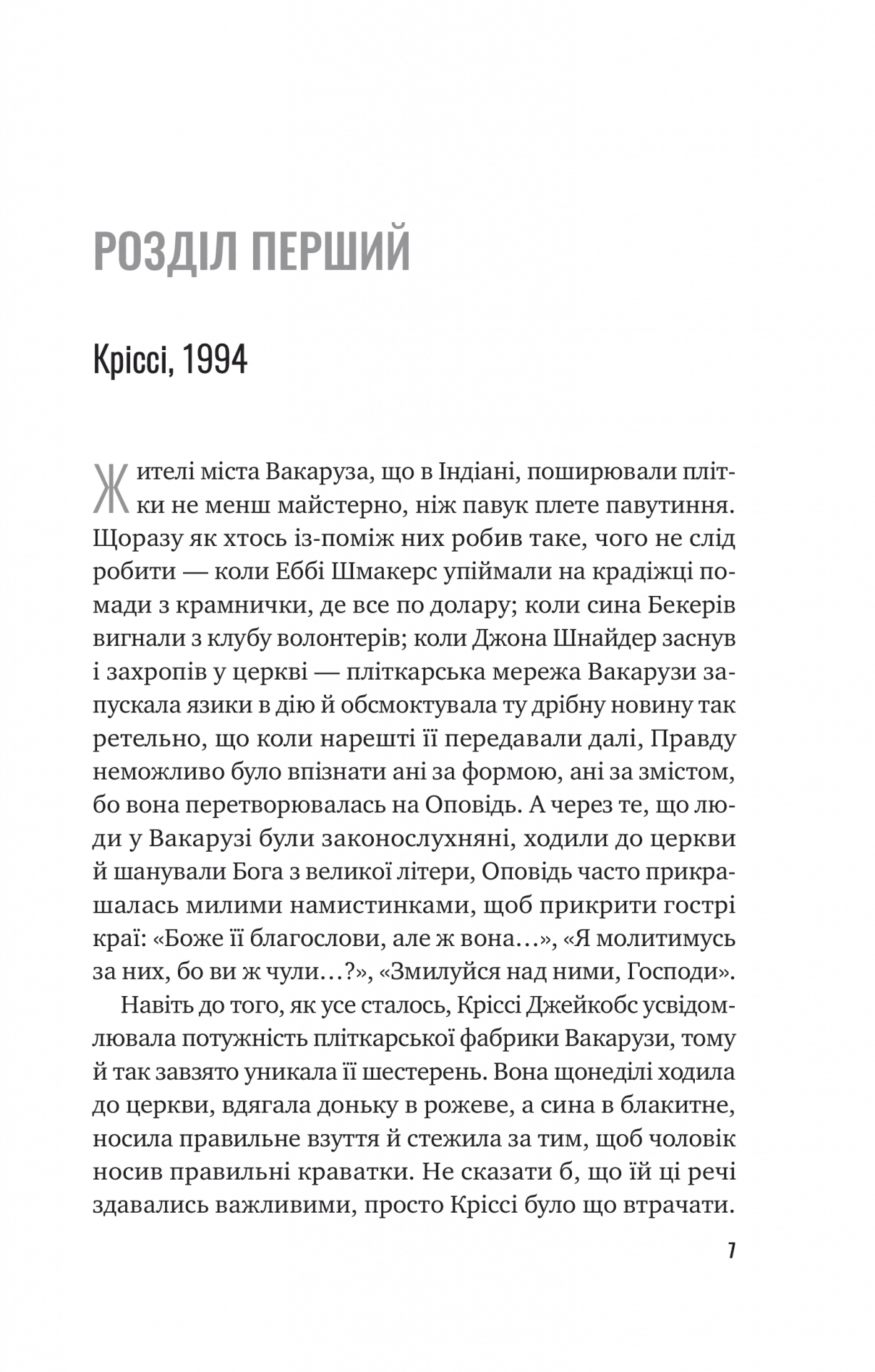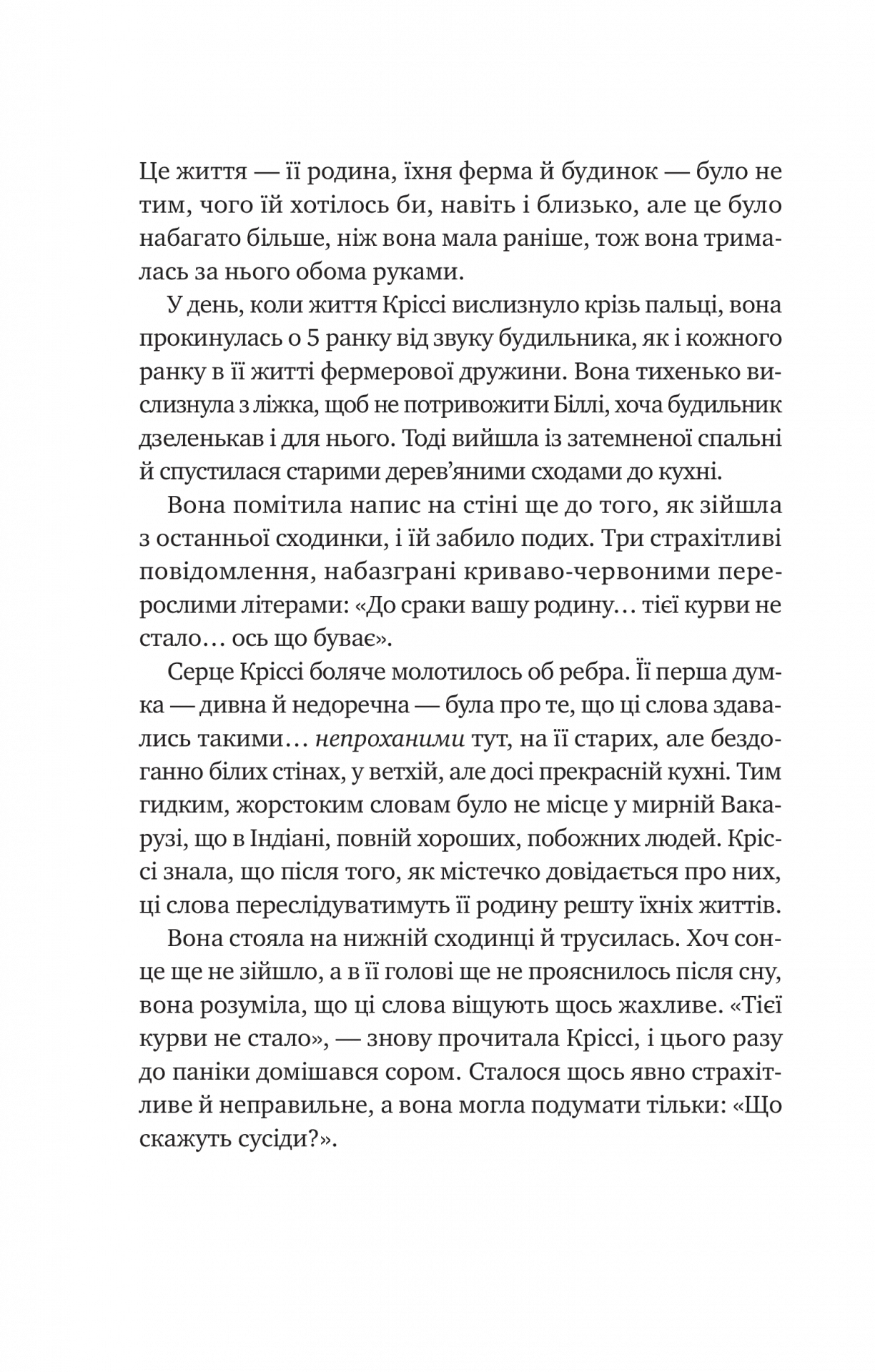 Це сталося знову... Марґо все життя вважала, що могла тоді опинитися на місці Дженьєрі, тож вирішує розшукати Наталі та поставити крапку в цій історії. Та що більше подробиць з’ясовує журналістка, що більше незручних питань озвучує, то сильніший опір їй чинять містяни. Невже вони не хочуть, щоб злочини були викриті? І чи справді викрадач Наталі й убивця Дженьєрі — одна й та ж людина?