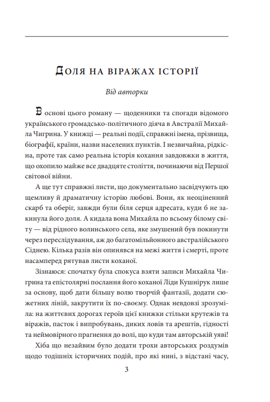 Самі небеса благословили їхнє кохання – Ліда Кушнірук і Михайло Чигрин змалечку були разом: у рідному селі, в Луцькій українській гімназії, у мріях і навіть у тюрмі, до якої їх запроторювали за український патріотизм. У в’язниці їх розділяла кам’яна стіна старовинного монастиря. Та ще страшнішою стала залізна завіса, по два боки якої вони опинилися. Ліду відправили до одного з таборів ГУЛАГу. Михайлова дорога пролягла через країни Європи аж до Австралії. Він часто опинявся на межі життя і смерті, та куди б не закинула його доля, зберігав подарований Лідою на прощання золотий перстеник і її листи, що стали його оберегом