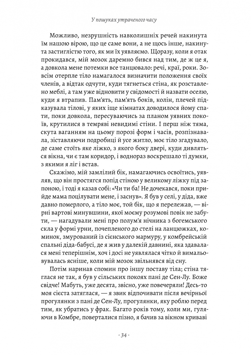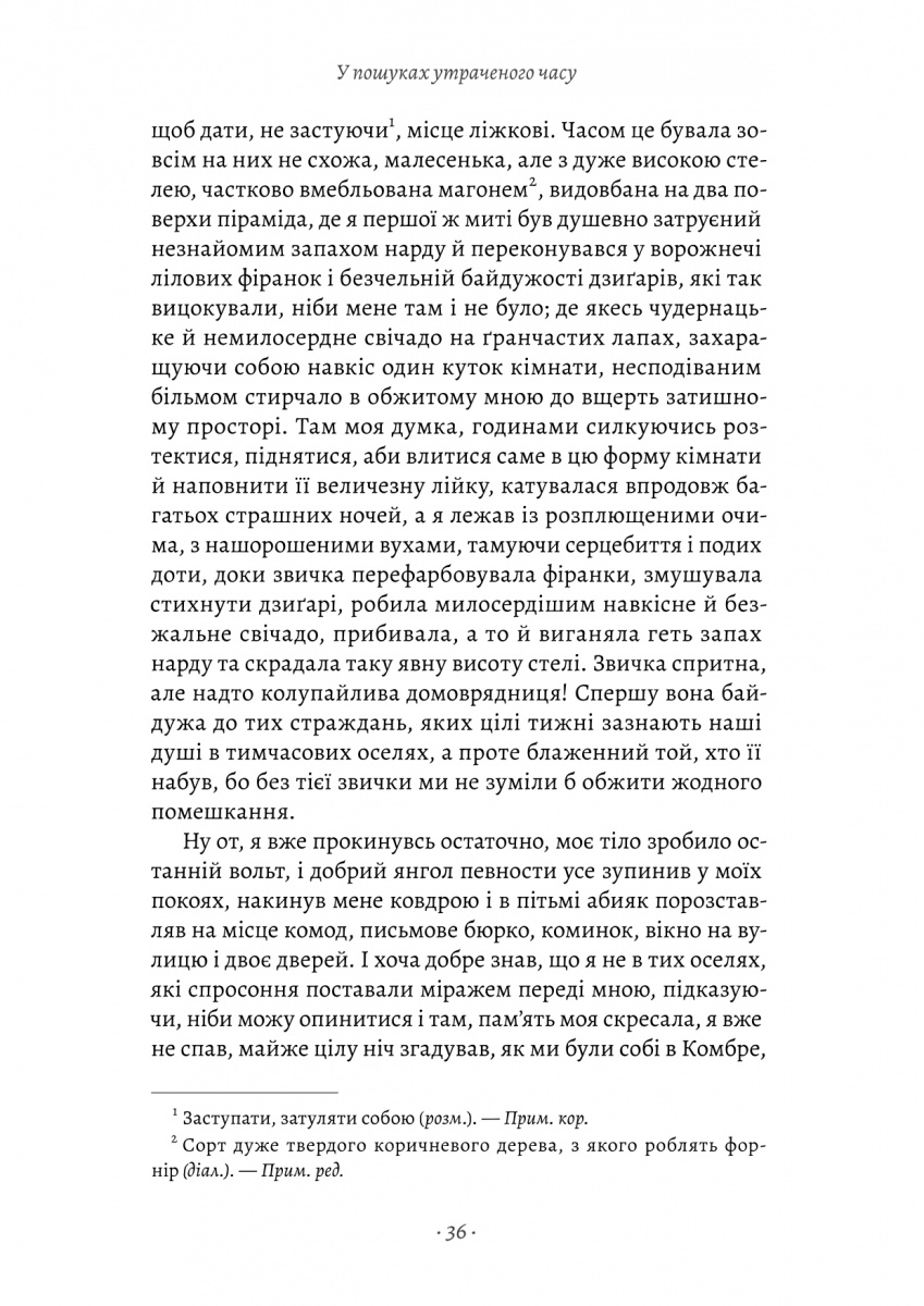 Перший частина знаменитої семитомної епопеї Марселя Пруста «У пошуках втраченого часу. На Сваннову сторону», в перекладі одного з найвидатніших українських перекладачів Анатоля Перепаді, є одним із ключових творів сучасної психологічної прози. Роман, написаний ще у 1913 році, розпочинає поетичну, заплутану подорож лабіринтами пам’яті — світом дитячих спогадів, внутрішніх переживань і уяви головного героя — хлопчика Марселя, у якому сплелось так багато автобіографічних рис самого автора.