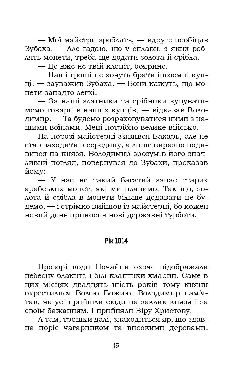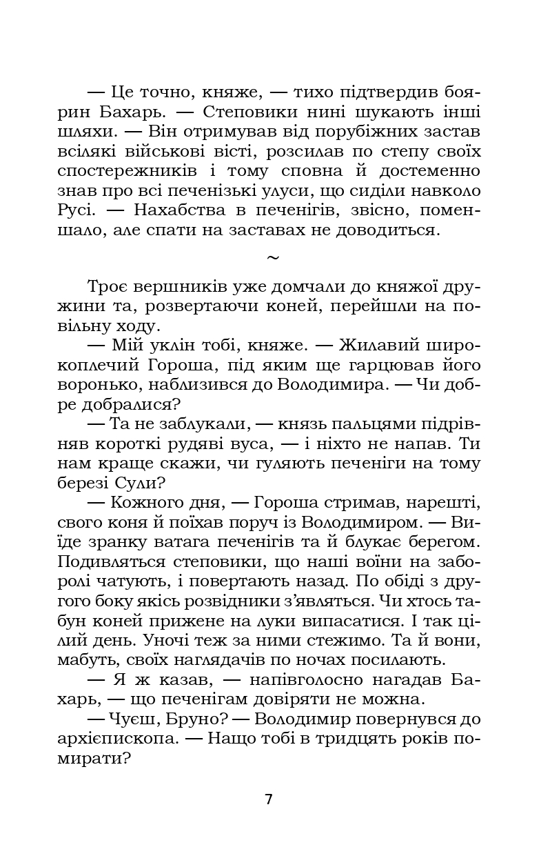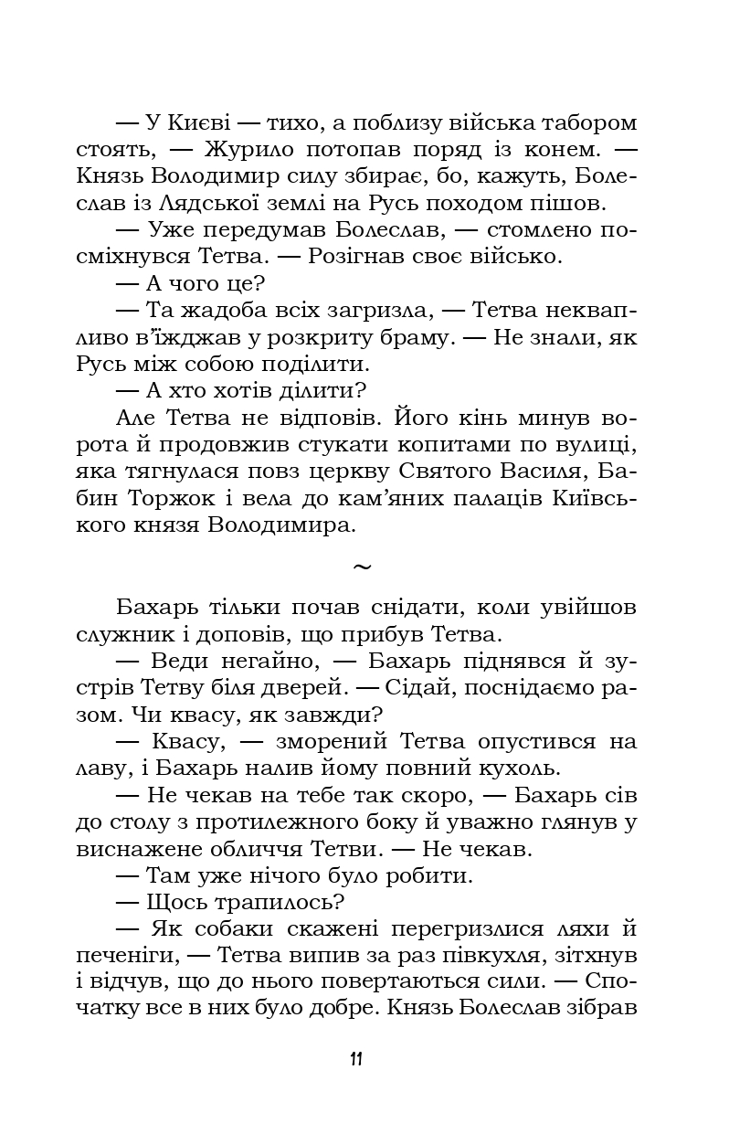 Третя книга містить «Повість про одинадцяте століття», яка подає історичне полотно від Володимира Великого до Володимира Мономаха. Ми занурюємося у століття, що наповнене подіями та пригодами: приїзд Володимира Великого разом з архієпископом Бруно Кверфуртським до степового порубіжного городка, початок карбування власних монет, будівництво таємного підземного ходу, протистояння між синами князя Володимира.