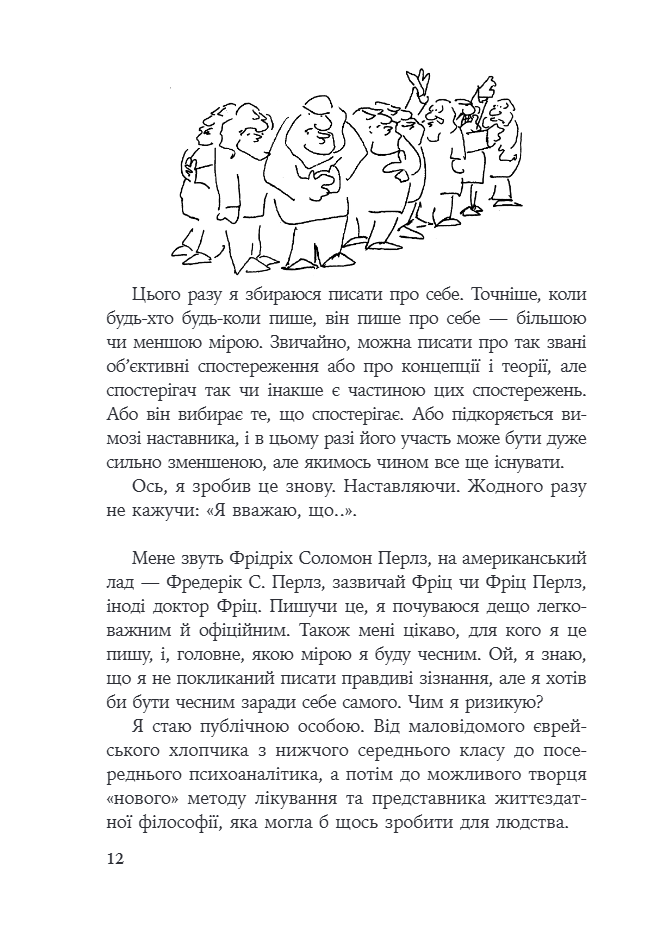 Перлз відверто розповідає про власні пошуки сенсу, помилки, егоїзм, страхи й екзистенційні відкриття. Він досліджує теми самоприйняття, творчості, відповідальності, свободи і справжності, демонструючи, як принципи гештальт-терапії проявляються не лише в терапевтичній роботі, а й у самому способі буття.