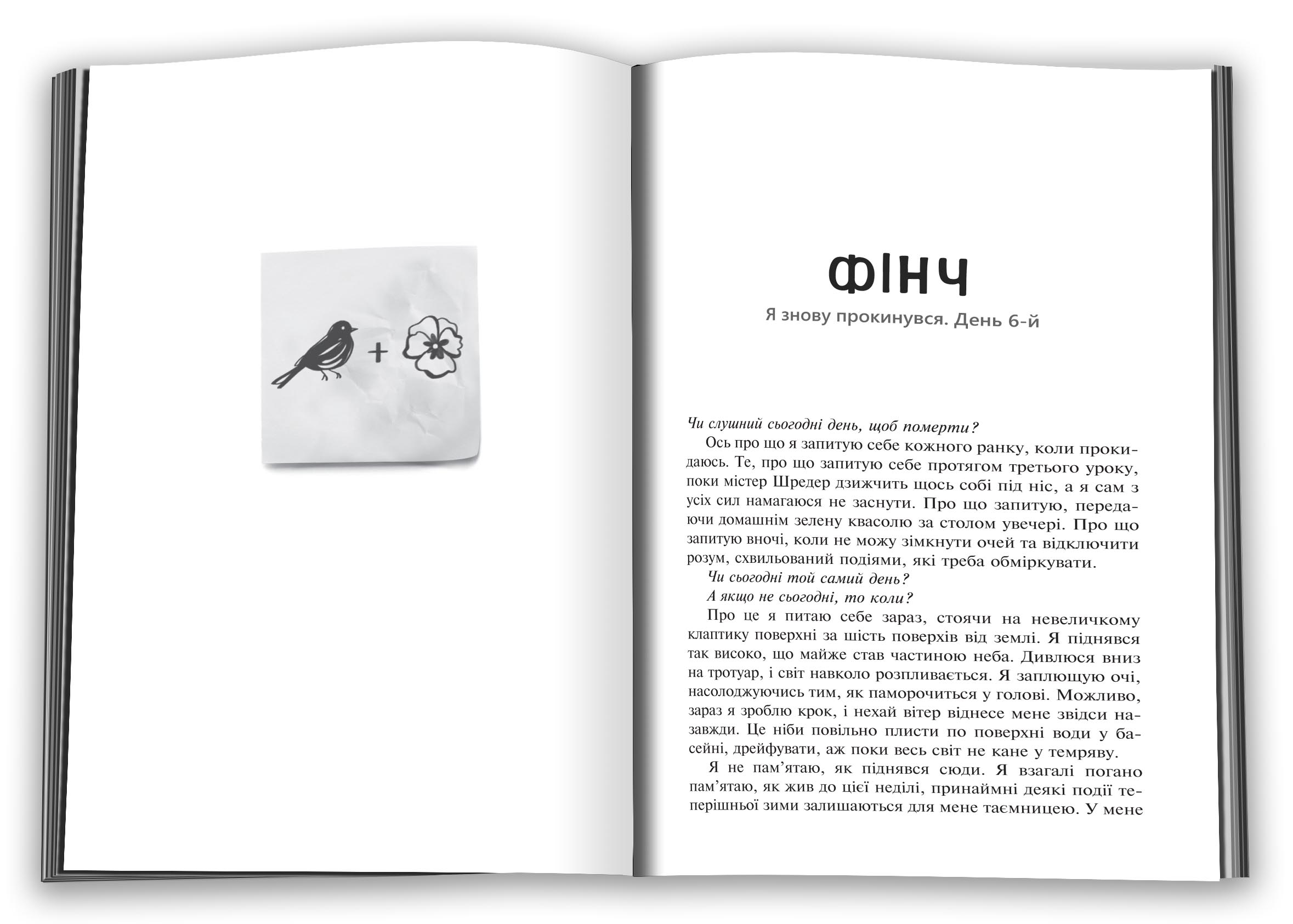 Головні герої роману, такі молоді, розумні та вродливі, випадково зустрічаються на виступі шкільної дзвіниці, за крок до вічної безодні. Що змусило кожного з них прийняти настільки жахливе рішення? Чи зможуть вони зцілити і врятувати одне одного?