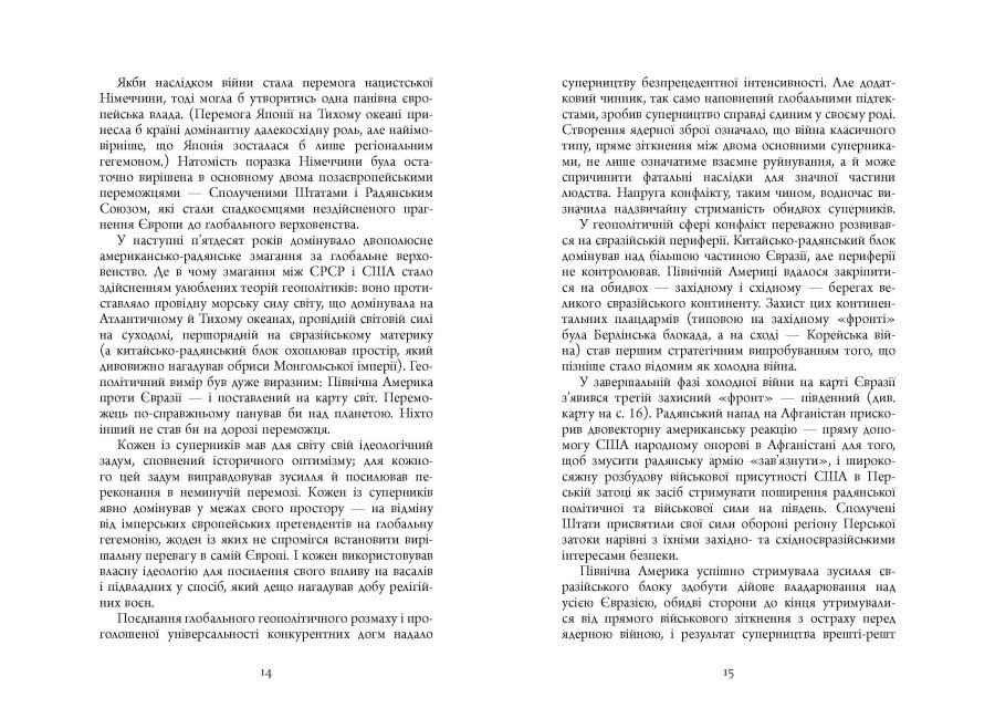 Наприкінці двадцятого століття США стають єдиною супердержавою у світі. Проте критичне питання, що стоїть перед Америкою, залишається без відповіді: якою має бути глобальна стратегія країни для збереження її виняткової позиції у світі? У своїй гострій книжці Збіґнев Бжезінський дає відповідь на це питання. «Велика шахівниця» відображає сміливе і провокаційне геостратегічне бачення автором американського переважання у XXI столітті. Центральним у його аналізі є здійснення влади на євразійському ландшафті, де проживає найбільша частина населення земної кулі; природні ресурси та господарська діяльність. Завдання, що стоїть перед Сполученими Штатами, стверджує він,— керувати конфліктами і відносинами в Європі, Азії та на Близькому Сході, щоб не виникло жодної країни-суперниці. У цій книзі автор пояснює наприклад, чому Франція і Німеччина будуть грати ключові геостратегічні ролі, тоді як Великобританія і Японія — ні. Або чому доля України настільки важлива для Америки. Ви можете скласти власне уявлення про глибину і слушність міркувань політолога, що постають перед Вами в компетентному українському перекладі. Збіґнєв Бжезінський — американський політолог, соціолог і державний діяч. Радник з національної безпеки президента Джиммі Картера, радник і член правління Центру стратегічних і міжнародних досліджень, професор зовнішньої політики США у Вищій школі міжнародних досліджень Університету ім. Джона Гопкінса. «Велика шахівниця» — одна з найбільш резонансних книжок кінця ХХ століття, яка й дотепер викликає інтерес читацької аудиторії.