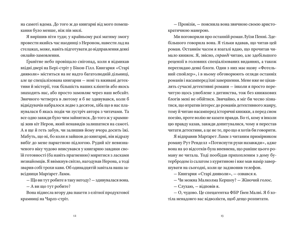 Декілька років тому поціновувач детективів Малколм Кершоу склав список найзаплутаніших злочинів у жанрі — тих, які майже неможливо розкрити. Він назвав його «Вісім ідеальних убивств». Та найбільше здивувався сам Мел, тепер власник книгарні «Старі дияволи» у Бостоні, коли одного сніжного дня на його порозі з’явилася агентка ФБР. Вона розслідує серію нерозкритих убивств, що моторошно нагадують злочини зі старого списку. І, здається, вона не єдина, хто зацікавився книгарем, який проводить вечори на самоті з книжкою у руках. Схоже, за Мелом стежить й убивця — той, хто знає про нього небезпечно багато, навіть найтемніші секрети, приховані від усіх. Щоб урятуватися, Мел сам починає шукати підозрюваних… і бачить убивцю в кожному. Раптом з’являються нові жертви — і петля навколо шиї книготорговця затягується так міцно, що вирватися може бути вже запізно.