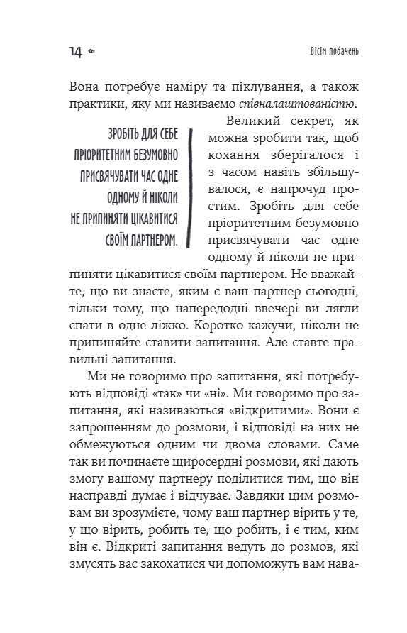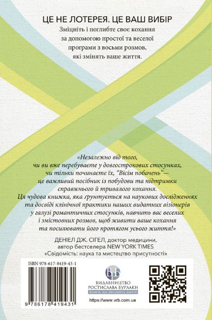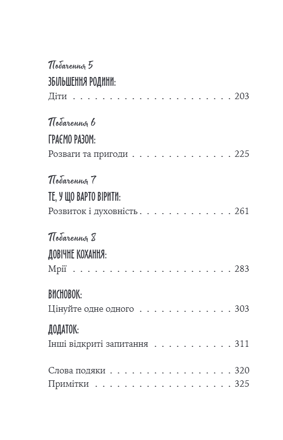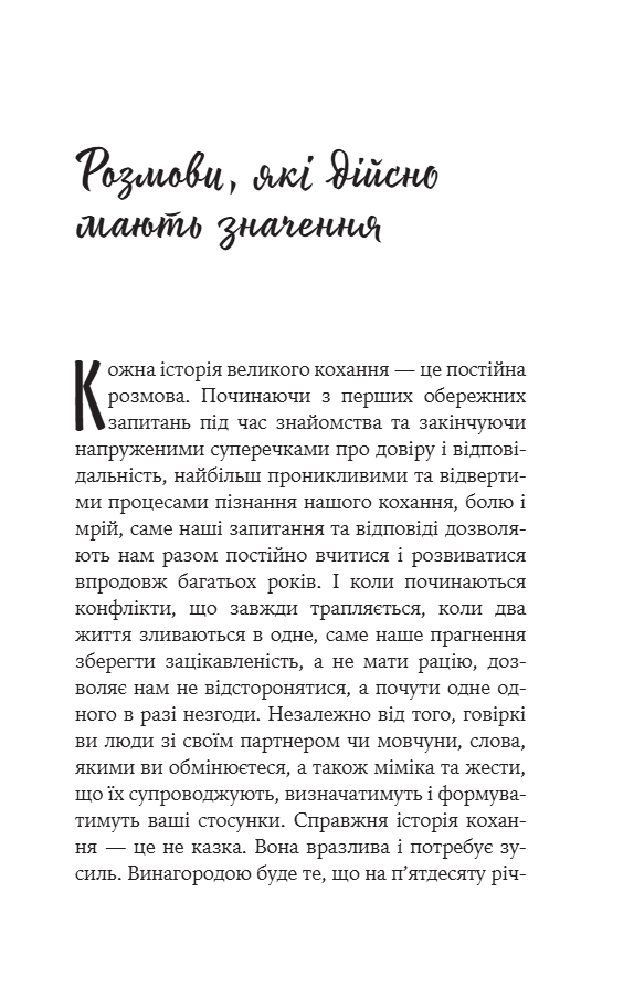 У кожному розділі — план одного вашого побачення і ті питання, які допоможуть вам краще зрозуміти одне одного. І тоді конфлікти, неминучі у будь-яких стосунках, не роз’єднуватимуть вас, а, навпаки, зміцнюватимуть зв’язок.