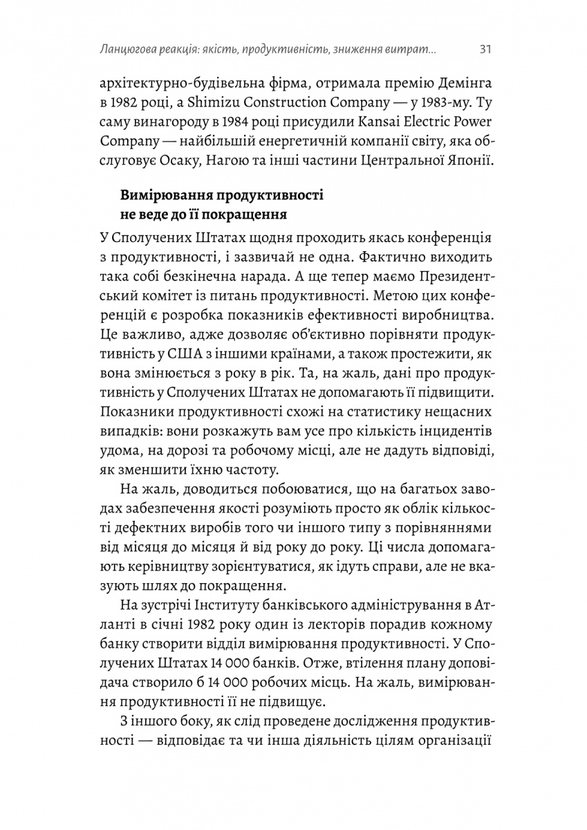 На думку всесвітньо відомого вченого з управління Едвардса Демінга, сучасні компанії потребують трансформації стилю управління й відносин уряду з промисловістю. А «Вихід з кризи», вперше опублікована у 1982 році теорія менеджменту Демінга, заснована на знаменитих «14 пунктах для менеджменту», стверджує, що нездатність планувати майбутнє призводить до втрати ринку, а отже і втрати робочих місць. Менеджмент повинен оцінюватися не лише за квартальними дивідендами, але й за інноваційними планами, спрямованими на збереження бізнесу, захист інвестицій, забезпечення майбутніх дивідендів і створення нових робочих місць шляхом покращення якості продукції та послуг.