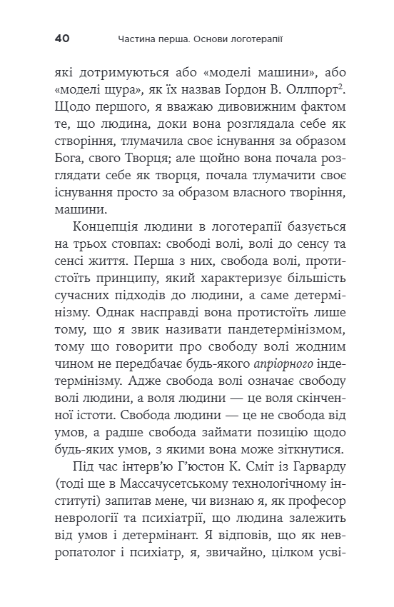 І хоча чимало людей живуть в екзистенційному вакуумі, спричиненому втратою сенсу, знайти сенс здатен кожен — через творчість (те, що ми вносимо у світ), через досвід (любов, красу, культуру, природу, взаємодію з іншою людиною) і через ставлення до страждання (людина здатна змінити своє ставлення і віднайти сенс у стражданні). Ця книга стане дороговказом для тих, хто шукає справжні, чесні відповіді на найважливіші питання та прагне знайти свій сенс.