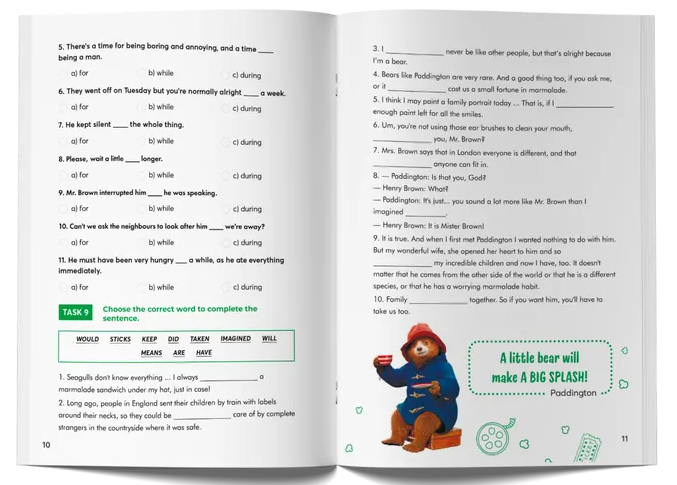 Зошит поділено на 2 частини: перша-для опрацювання фільму до початку перегляду, друга-після перегляду. У двох розділах ти зможеш працювати над трьома типами завдань: Vocabulary/Plot/Grammar.