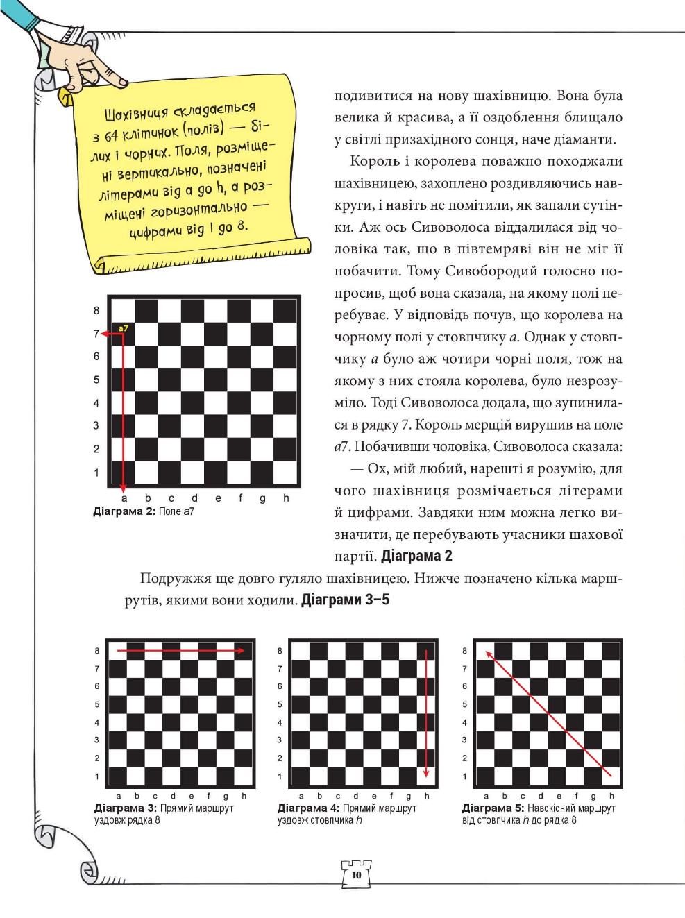 Шахи — це справжня королівська гра, яка розвиває уяву, навчає логічного мислення й витримки, тренує пам’ять, спостережливість і терпіння. У цій книжці ми розповімо про захопливі пригоди мешканців Міста Шахів, які допоможуть нам пояснити правила руху фігур шахівницею, а також основні тактичні прийоми гри в шахи.