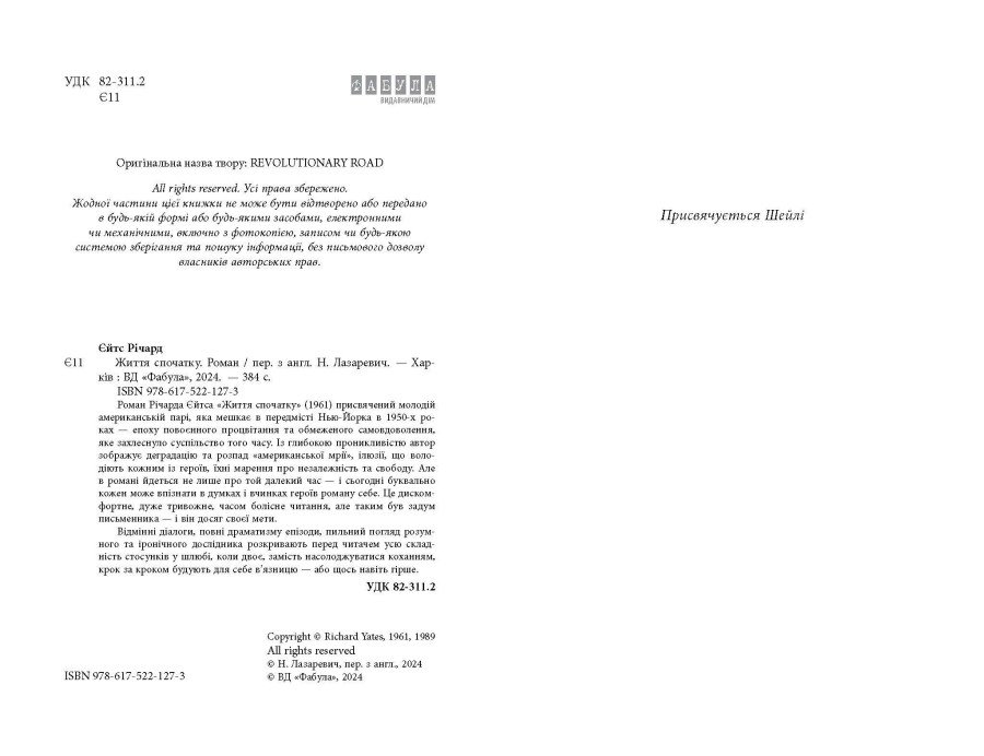 Роман Річарда Єйтса «Життя спочатку» (1961) присвячений молодій американській парі, яка мешкає в передмісті Нью-Йорка в 1950-х роках — епоху повоєнного процвітання та обмеженого самовдоволення, яке захлеснуло суспільство того часу. Із глибокою проникливістю автор зображує деградацію та розпад «американської мрії», ілюзії, що володіють кожним із героїв, їхні марення про незалежність та свободу.