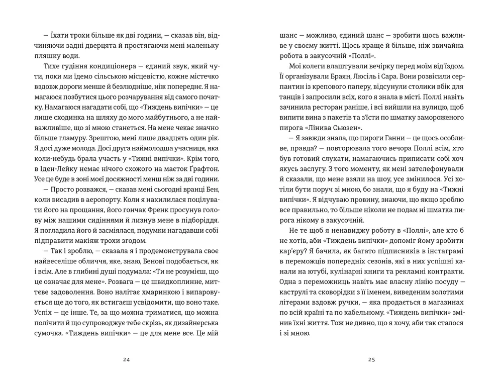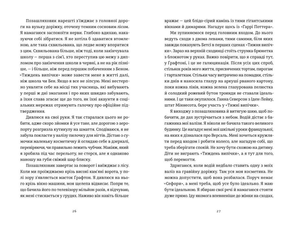 Дебютний роман Джесси Максвел, сповнений таємниць і несподіваних поворотів. У родинному маєтку відомої ведучої й авторки кулінарних книг Бетсі Мартін вкотре тривають зйомки найпопулярнішого телешоу «Тиждень випічки». «Золота ложка» дістанеться найвправнішому пекарю чи пекарці. І поки між учасниками розгортаються справжні змагання на камеру, відбувається щось дивне: хтось заміняє цукор на сіль, апельсинову есенцію — на бензин. Та коли під час грозової ночі в маєтку виявляють тіло, усім стає непереливки.