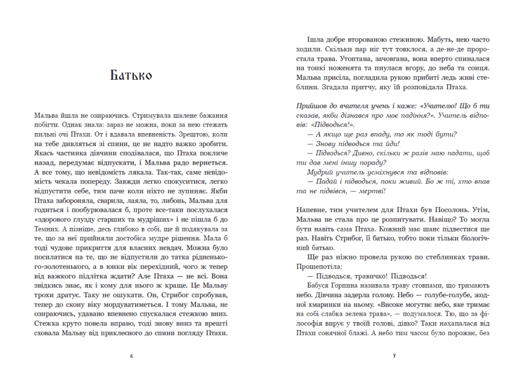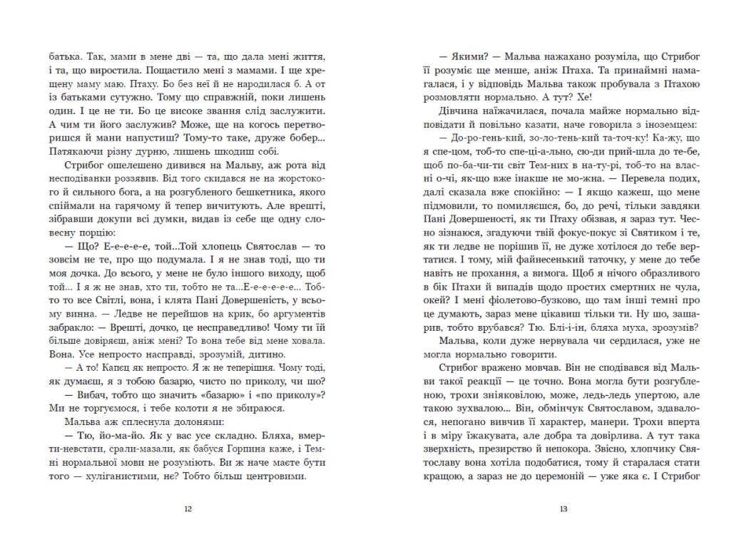 ...а поки Мальва мандрує світами. От і до темних завітала, до батька Стрибога. І Птаха не заперечувала, відпустила. А що? Мальва не боїться якихось-то дітей Чорнобогових. Вона зухвала, гостра на язик, темні їй не указ. Чи указ? І Мальва не боїться, бо геть не уявляє могутності темних? Їхньої жорсткої сили. І їхньої впевненості, що вона — вже їхня, що темна, просто не усвідомила це. І що ж робити? Як їй бути? Ким їй бути?